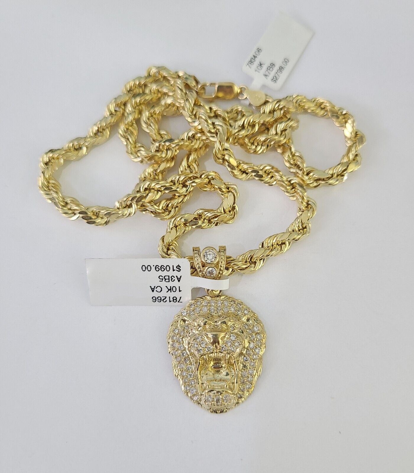 Is Presenting You with This Absolutely Stunning Real 10k Yellow Gold Rope Chain 5mm, 20 inch- 30 inches, Lobster Lock with a 10k Lion Charm . These Beautiful chains and Pendant will not tarnish, discolor, or fade because they are Pure 10K Gold. We also have them in various another length and sizes. 20"-A7B9 Cal A3B5