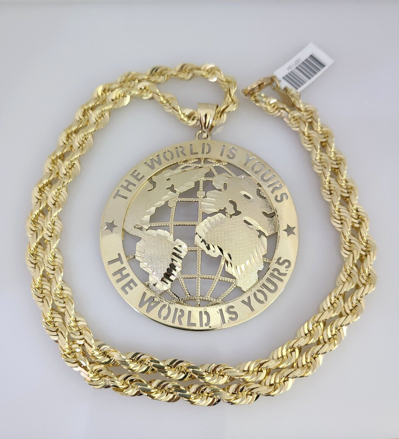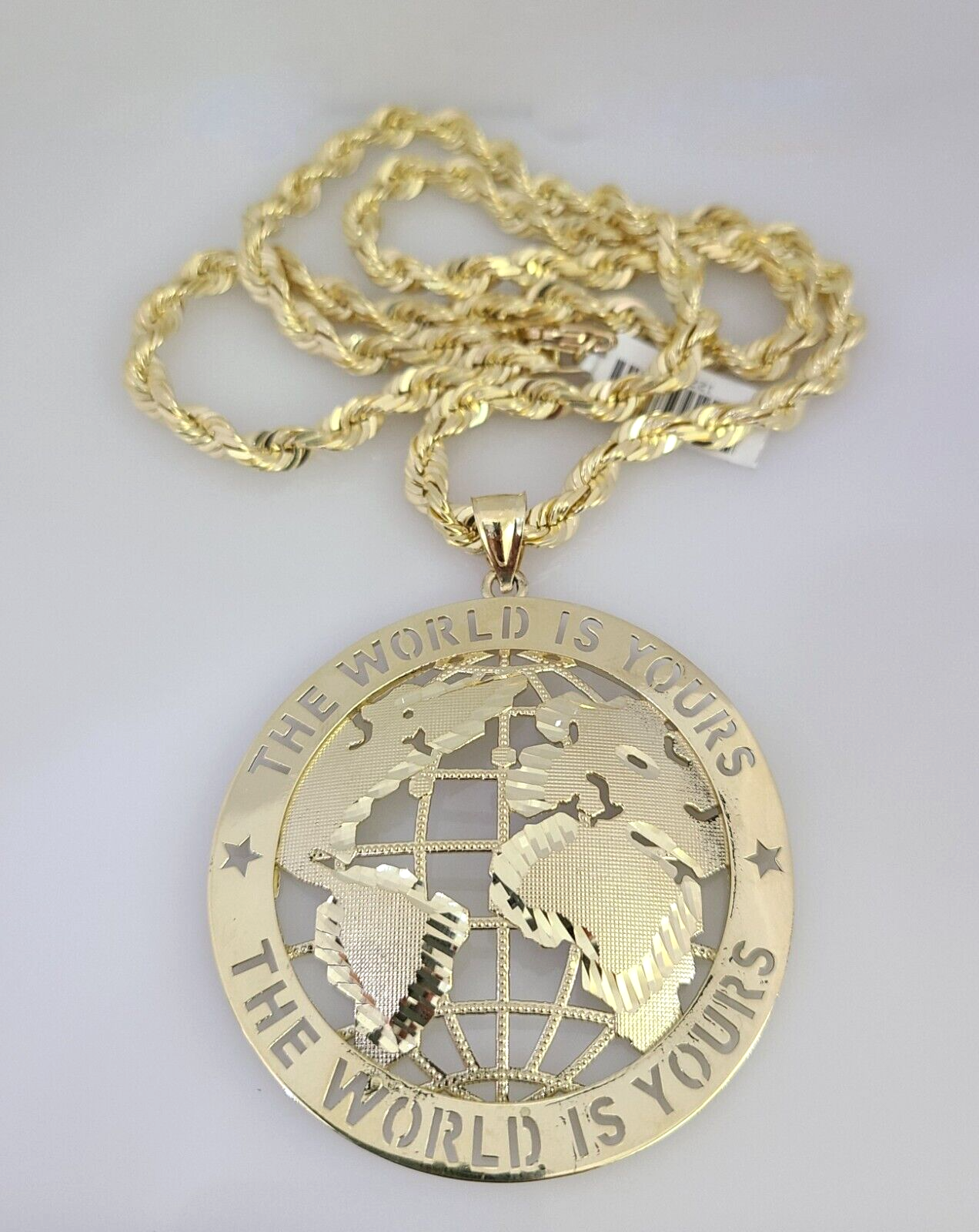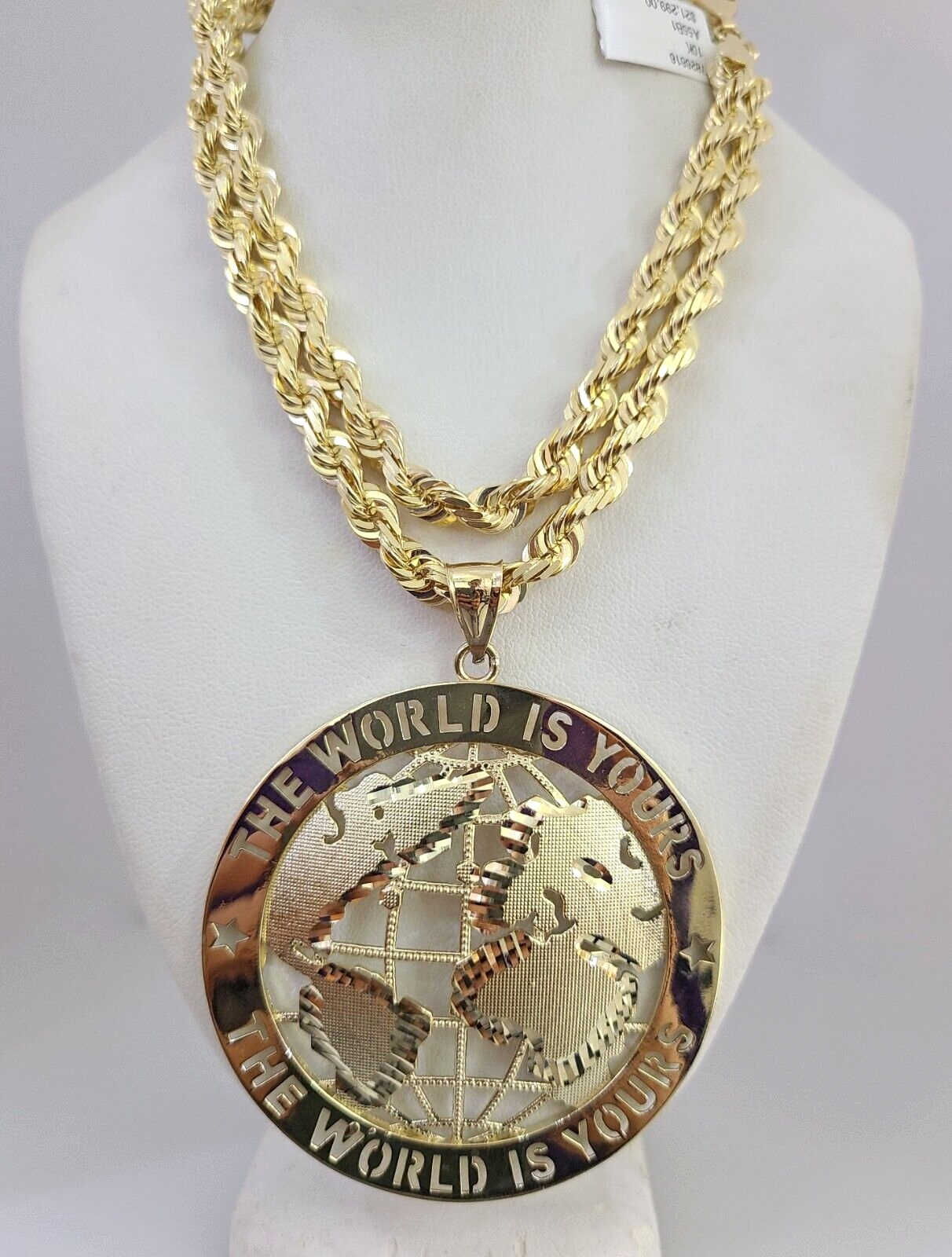 REAL 10k Solid Rope Necklace 6mm World is Yours Pendant SET Chain 20"-30'' Gold - 22 inch with charm