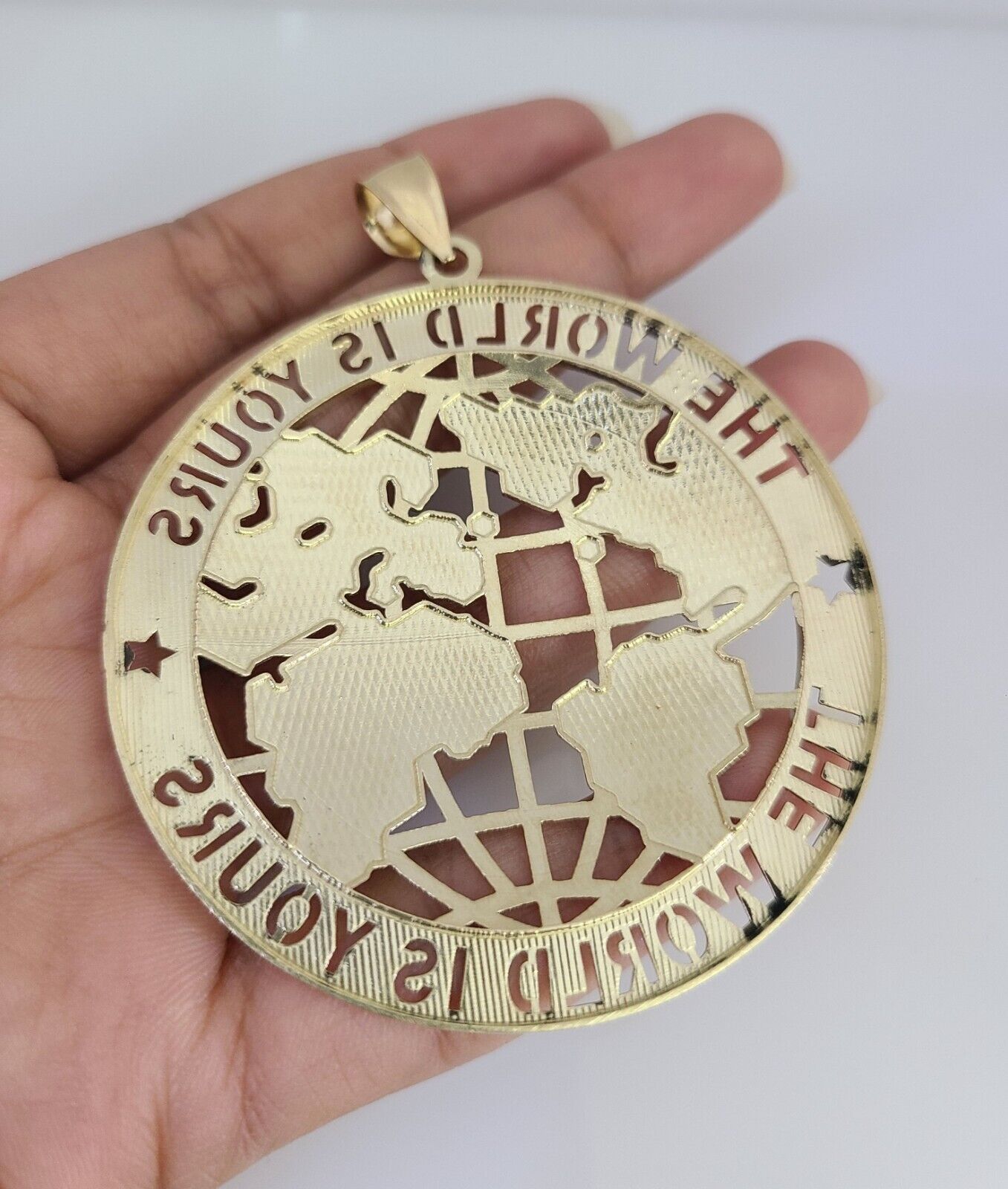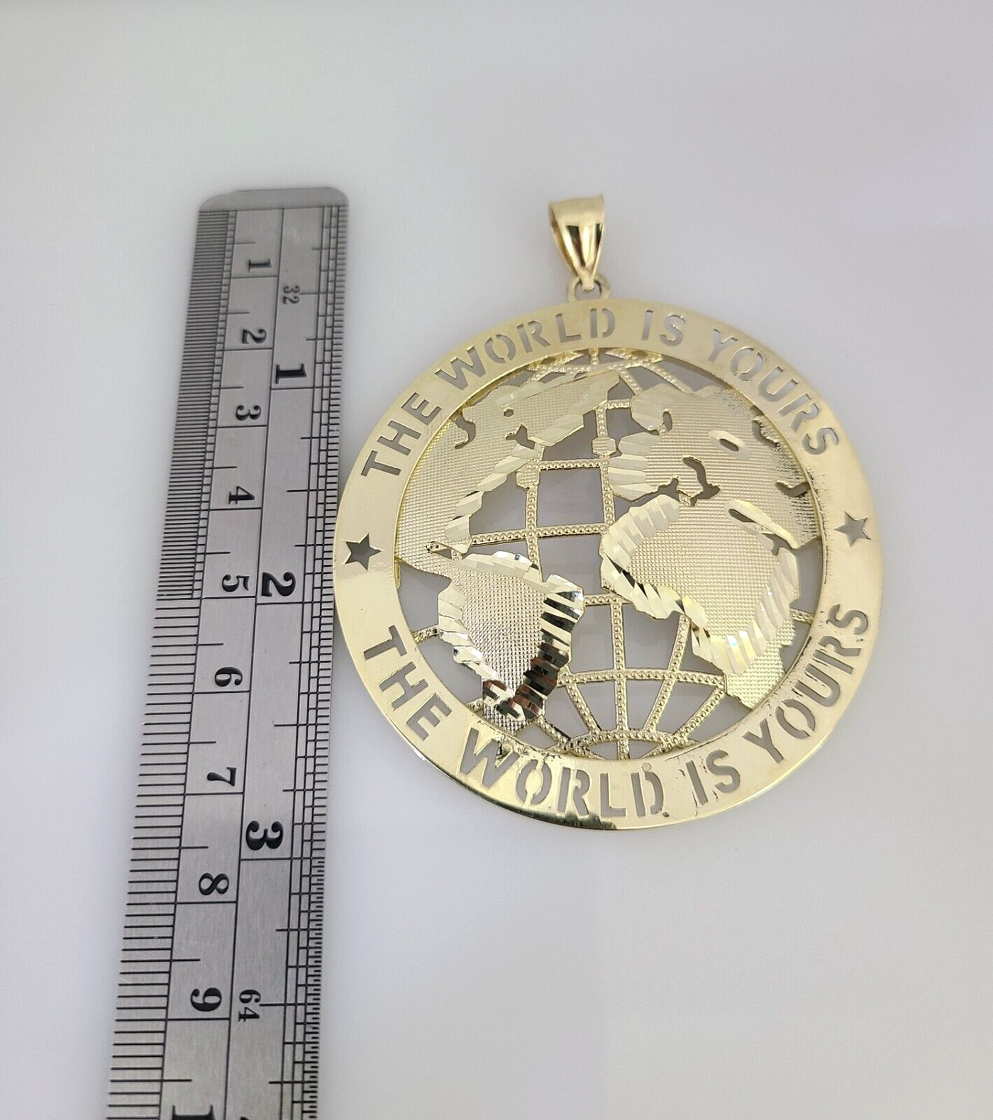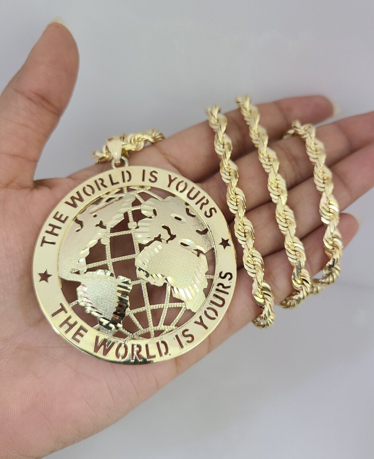 REAL 10k Solid Rope Necklace 6mm World is Yours Pendant SET Chain 20"-30'' Gold - 22 inch with charm
