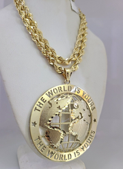 REAL 10k Solid Rope Necklace 6mm World is Yours Pendant SET Chain 20"-30'' Gold