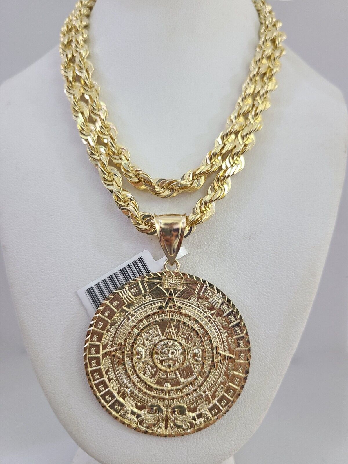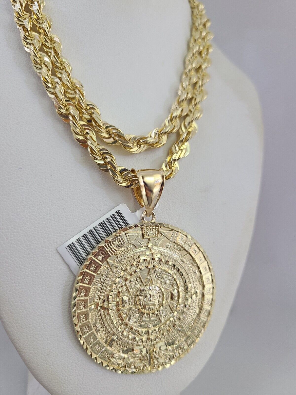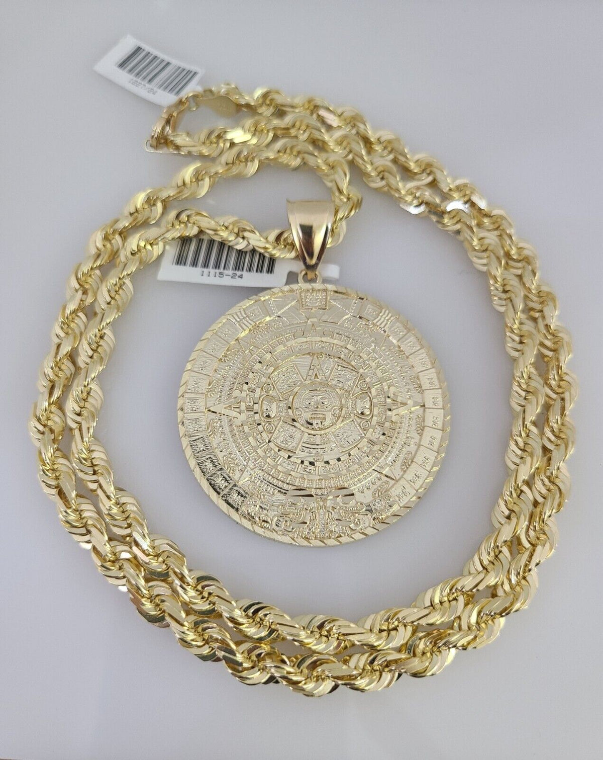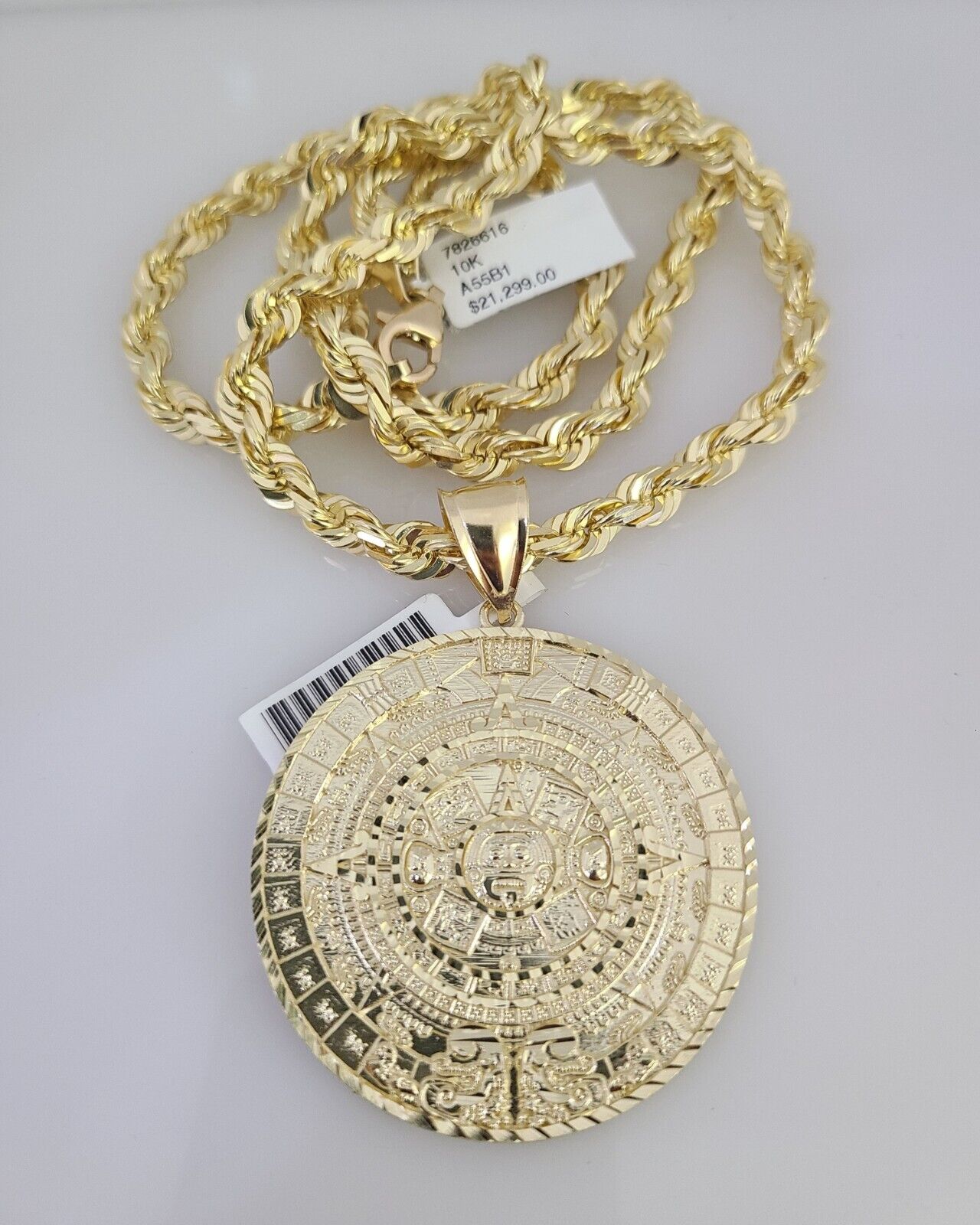 Genuine 10k Yellow Gold Solid Rope Chain 20-30 Inch 6mm Necklace With Mayan Calendar Charm design as a SET. The Various lengths of the Chain are 20-30 Inch . If you are not happy with the way it looks or feels, we do offer 30 - Days FREE Return shipping. Contact us for more information.