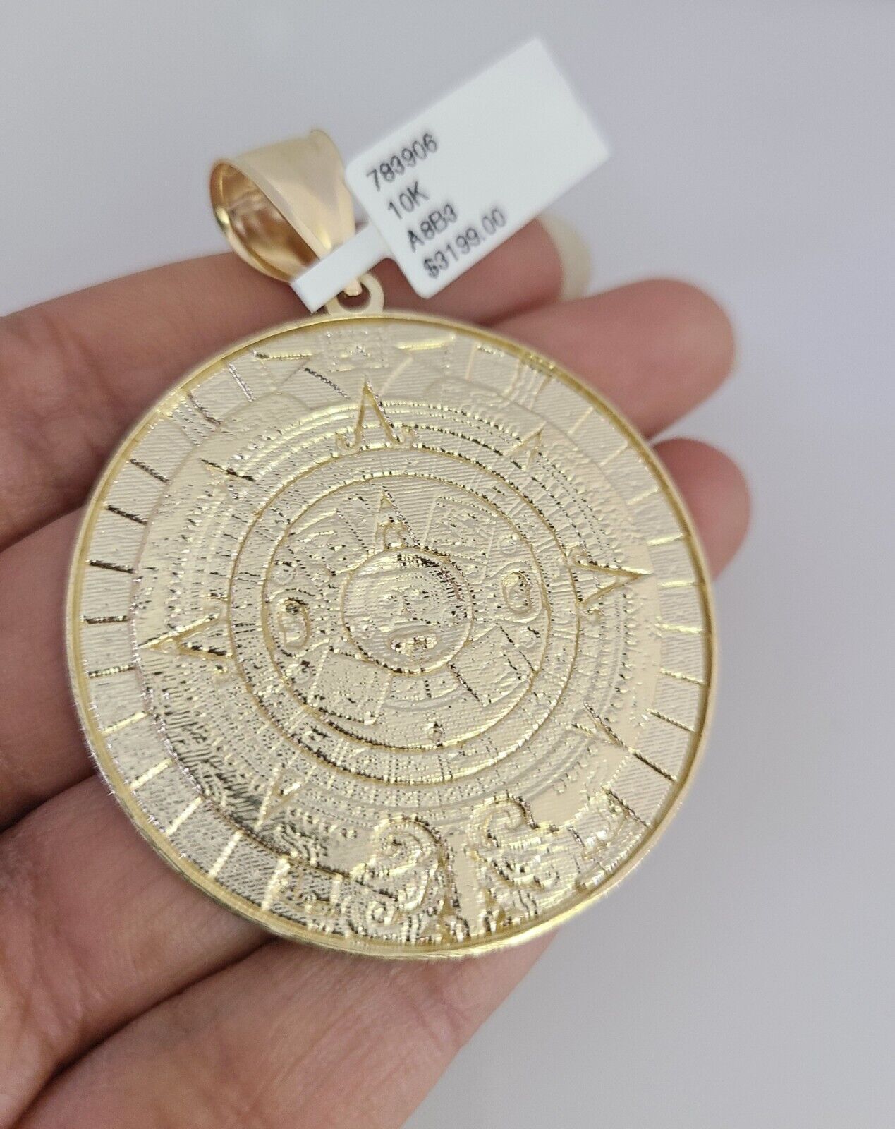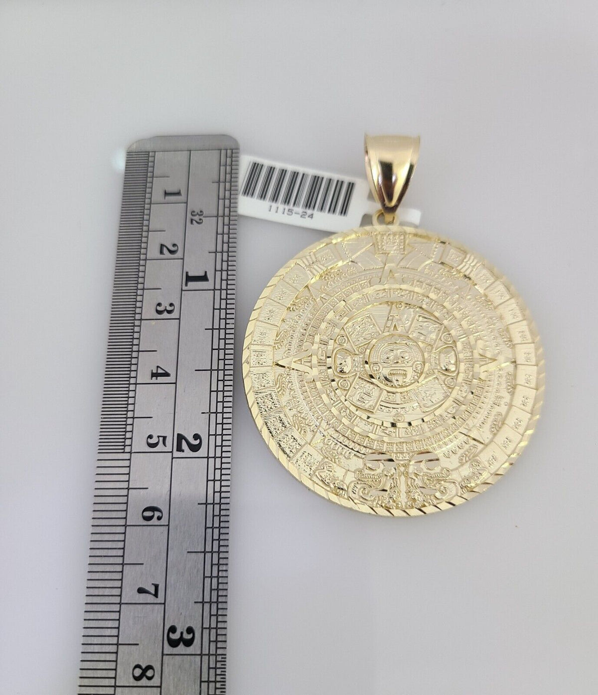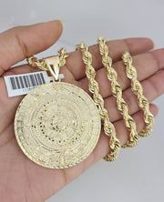 10k Yellow Gold Solid Rope Chain Mayan Calendar Charm Pendant 20"-30'' Inch Necklace