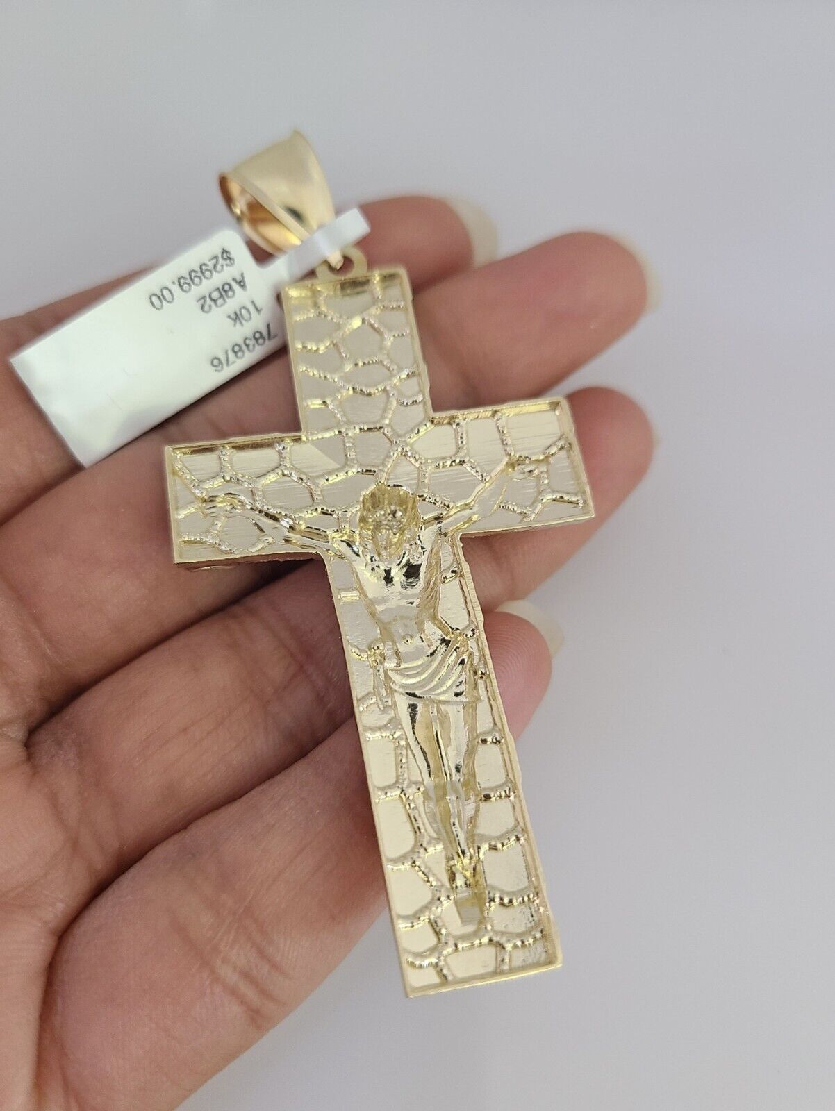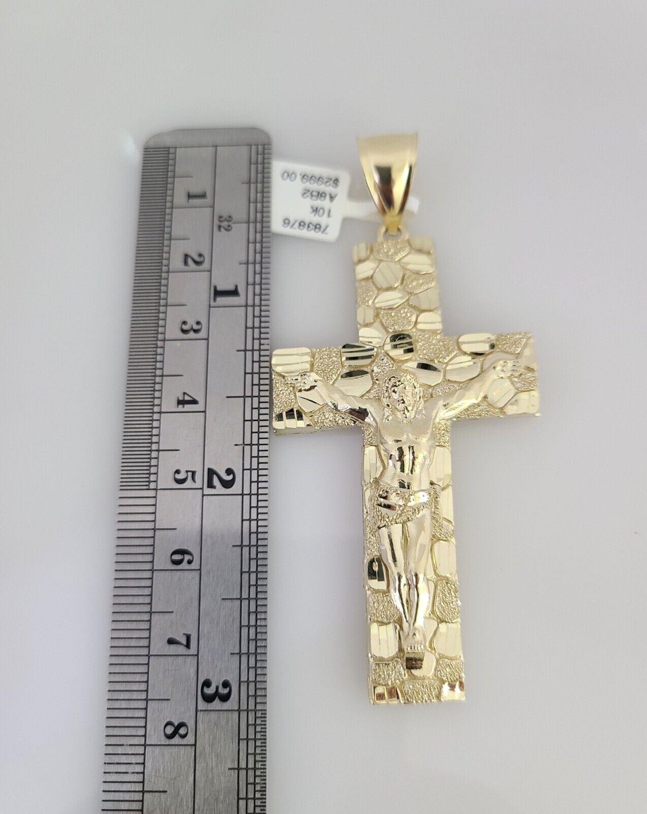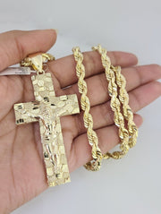 REAL 10k Solid Rope Necklace Nugget Cross Pendant SET Chain 20"-30'' 6mm Gold