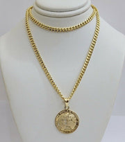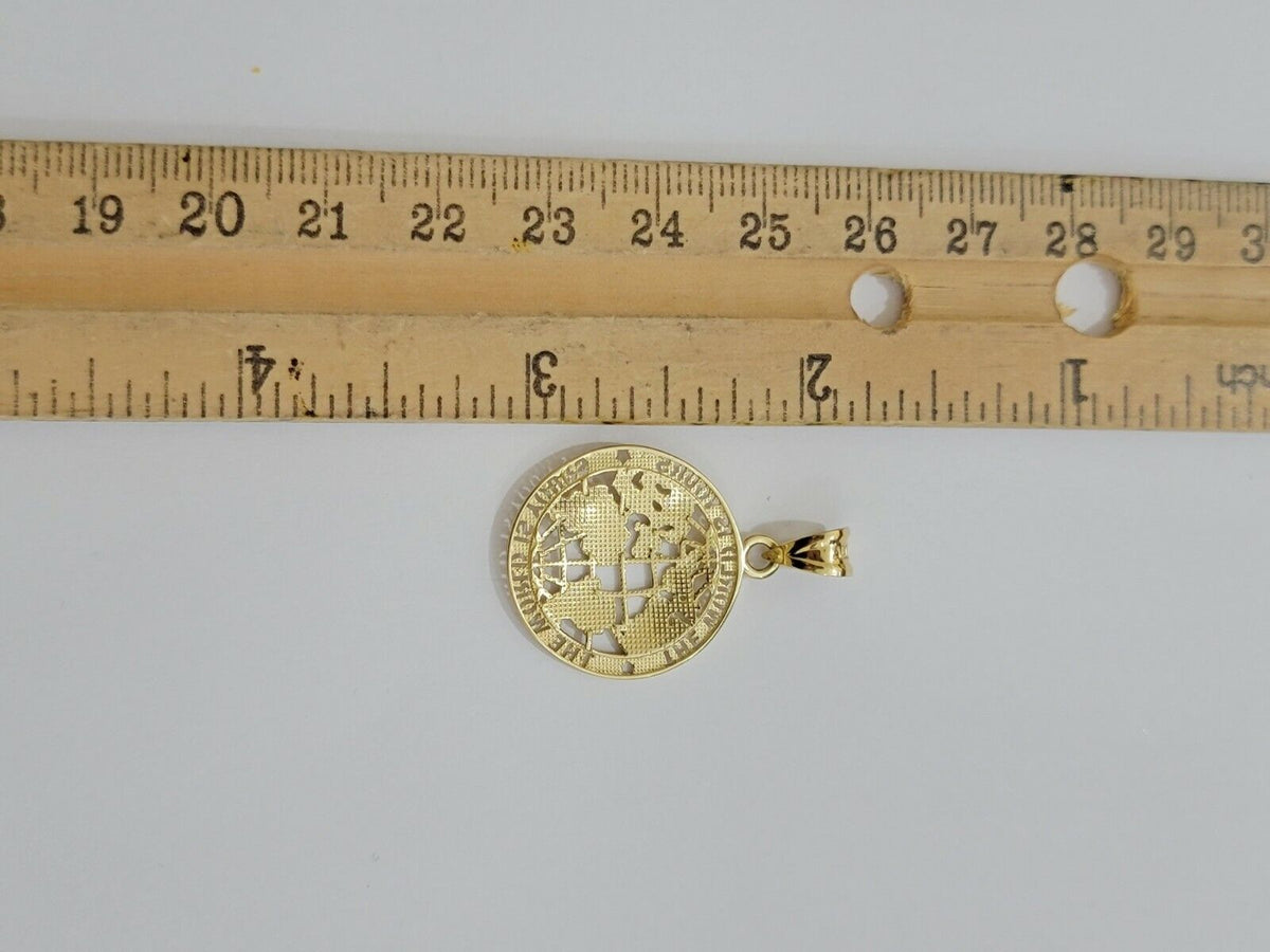 Real 10kt Gold Cuban Link Chain Pendant Set 18" 3.5mm Necklace World Map Charm