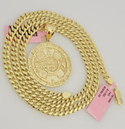 Real 14k Gold Miami Cuban Link Chain Mayan Charm Pendant SET 5mm Necklace 20-28"