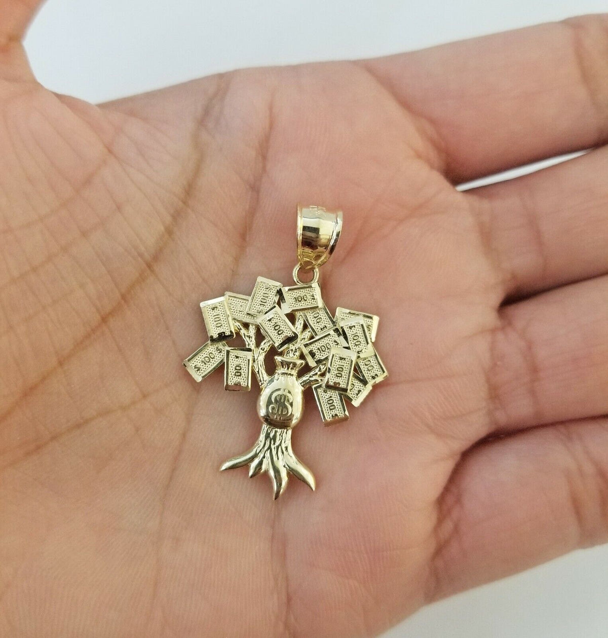 Is Presenting You with This Absolutely Stunning Real 10k $100 sign money tree charm. These Beautiful charm will not tarnish, discolor, or fade because they are Pure 10K Gold. We also have them in various another sizes. Please feel free to contact us if you have any queries regarding the item.