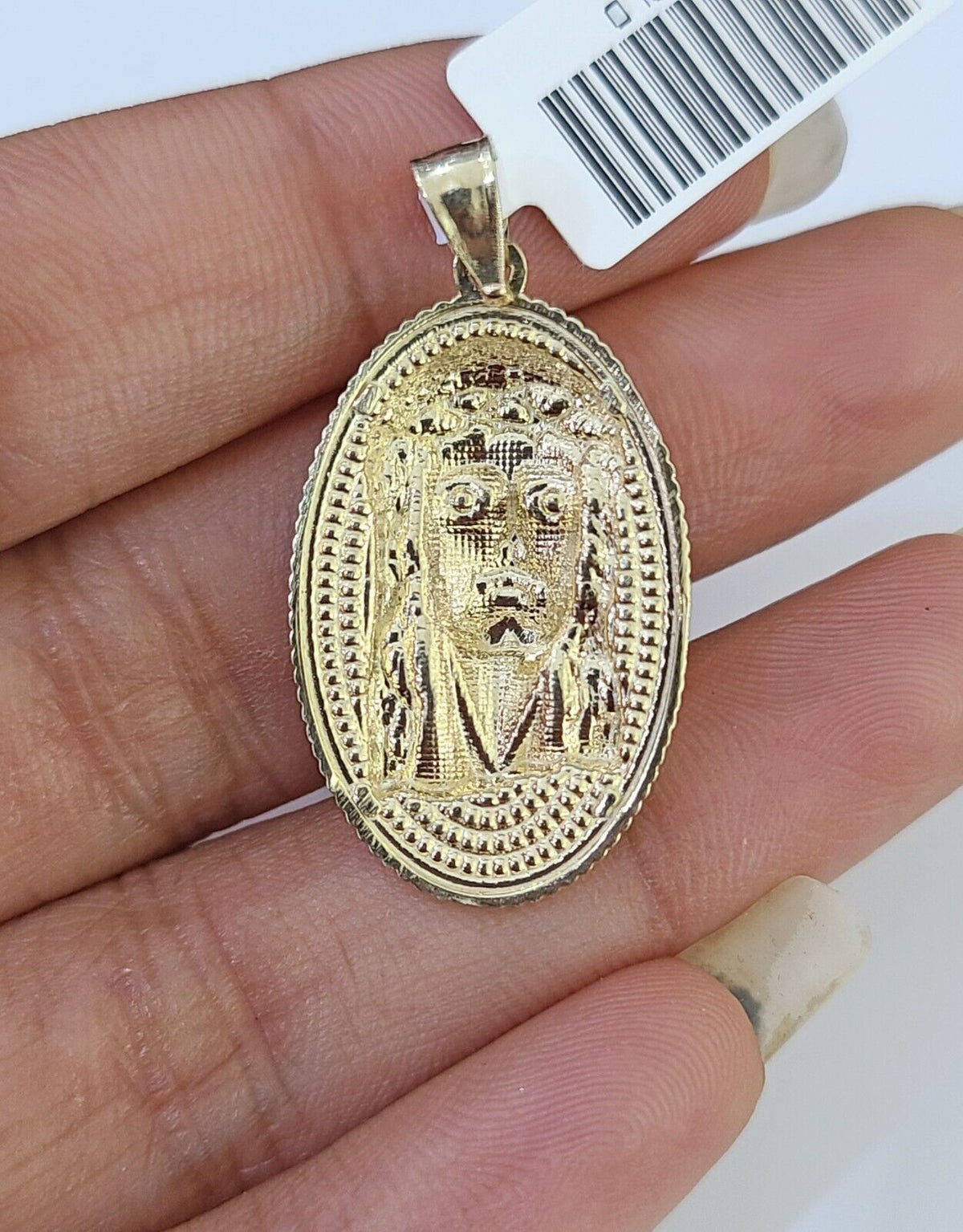 Real 10k Yellow Gold Oval Shaped Jesus Head Pendant 1-1.5 inches Charm