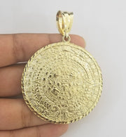Real 10k Yellow Gold Pendant Circular Mayan Calendar Charm 2.5" SOLID 10kt