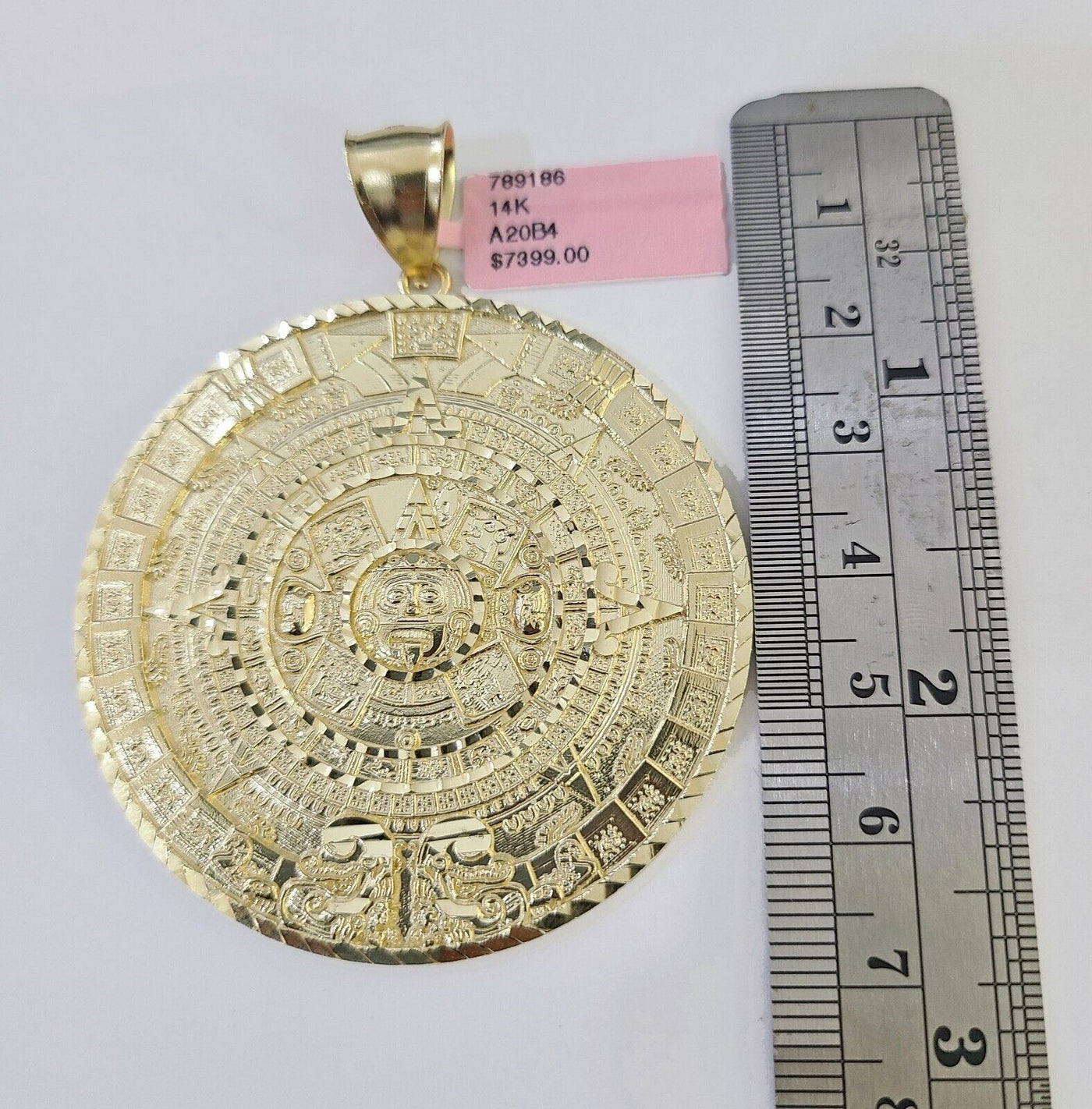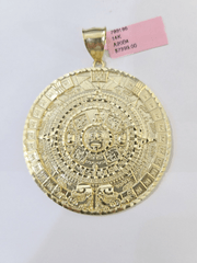 Real 14k Yellow Gold Circular Mayan Calendar / Pendant Charm 2.5 inches 14kt