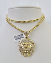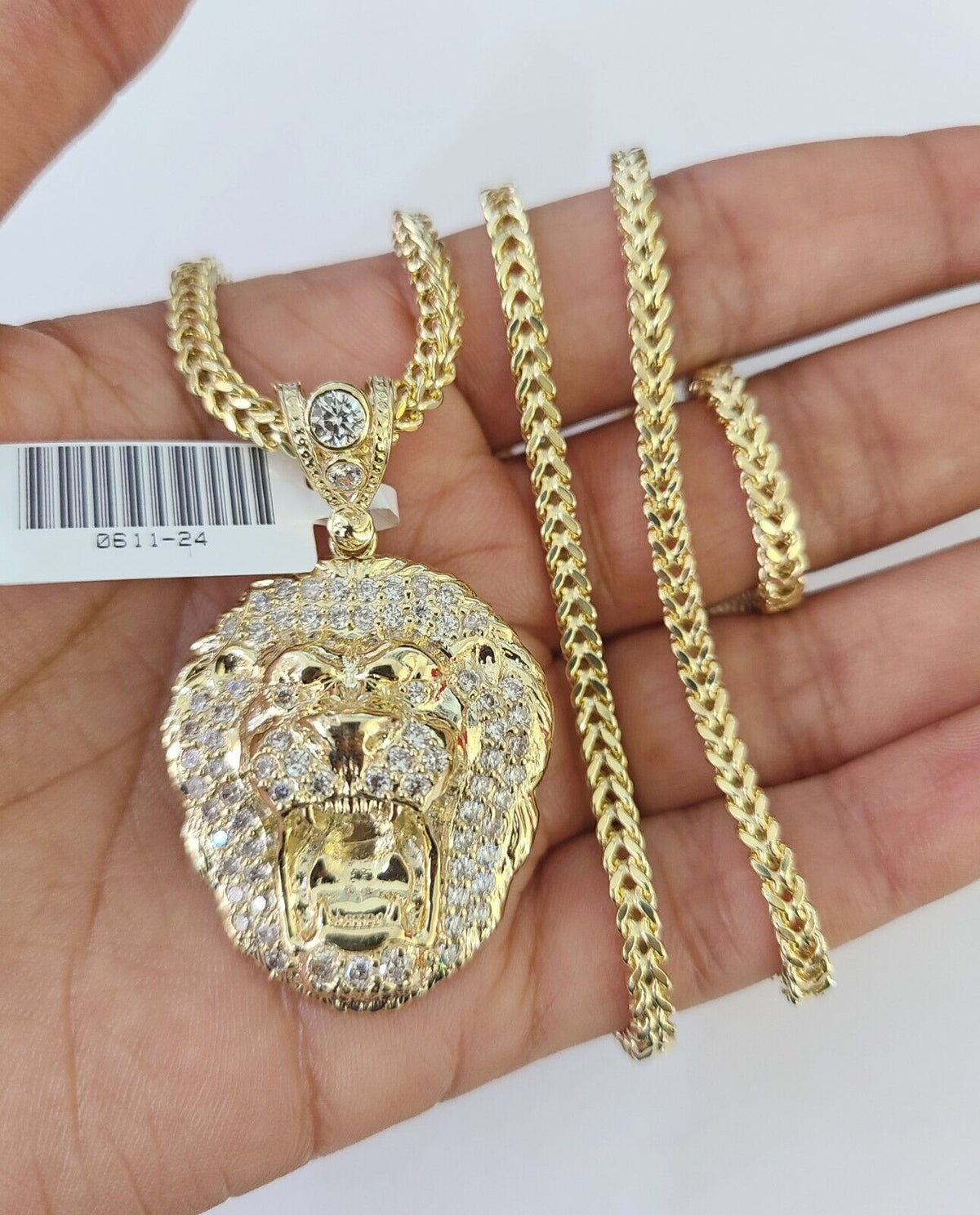 10K Franco Chain Roaring Lion Pendant Charm Necklace 20"-26" 3mm Gold Yellow SET