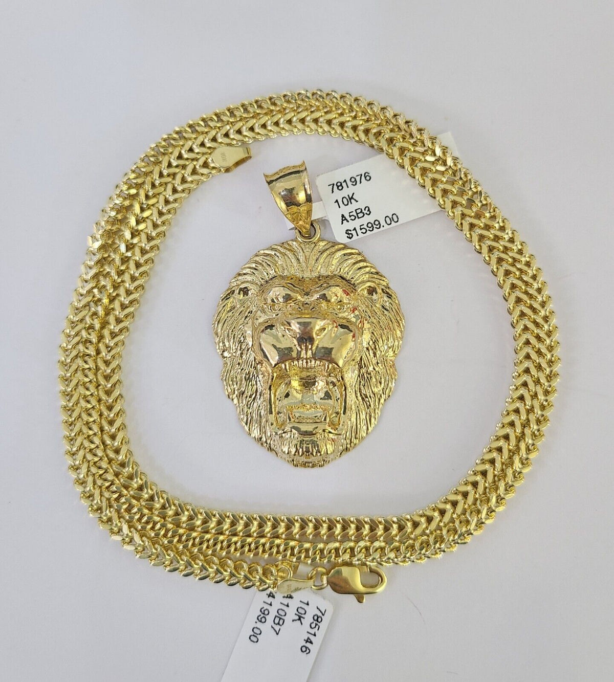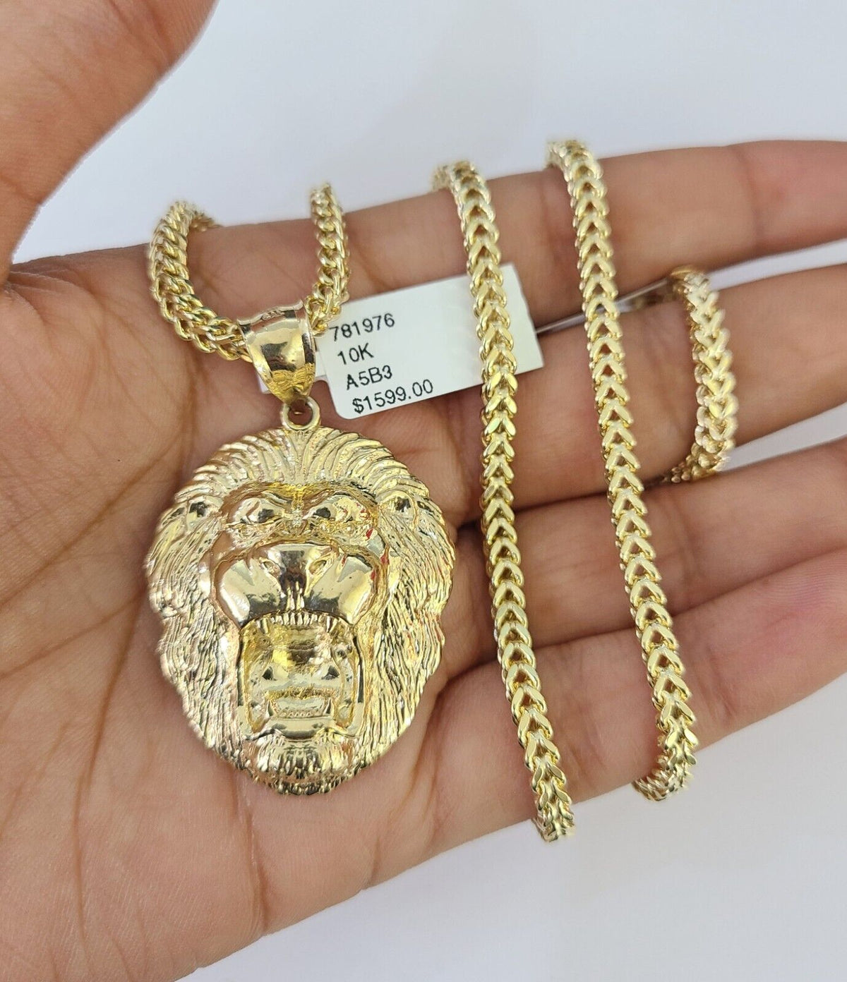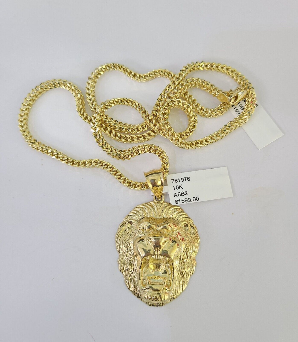 10K Franco Chain Roaring Lion Pendant Charm Necklace 20"-26" 3mm Gold Yellow SET