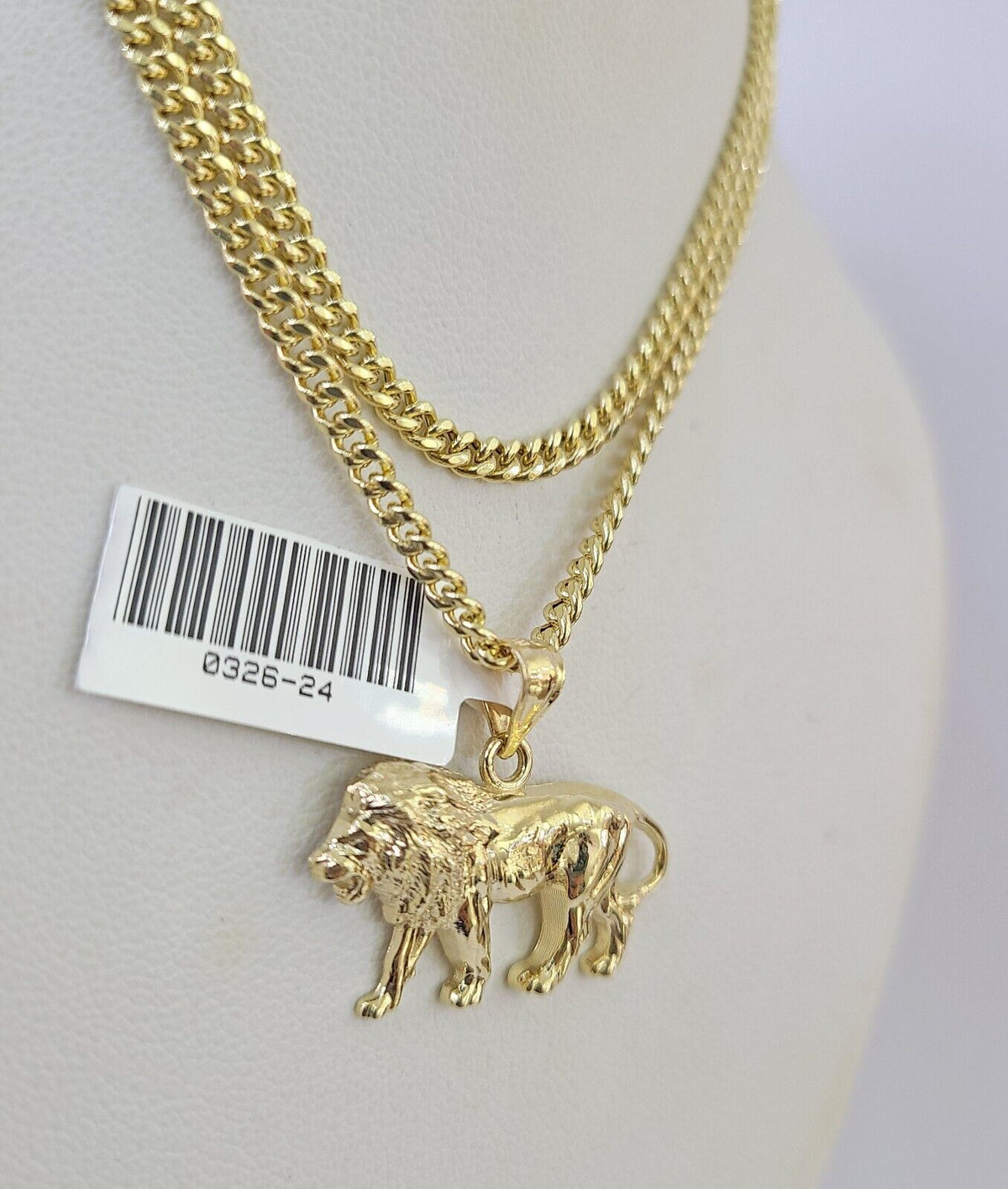 10K Gold Miami Cuban Chain Roaring Lion 18"-28" 3mm REAL Pendant Necklace SET - 18" Chain with Charm