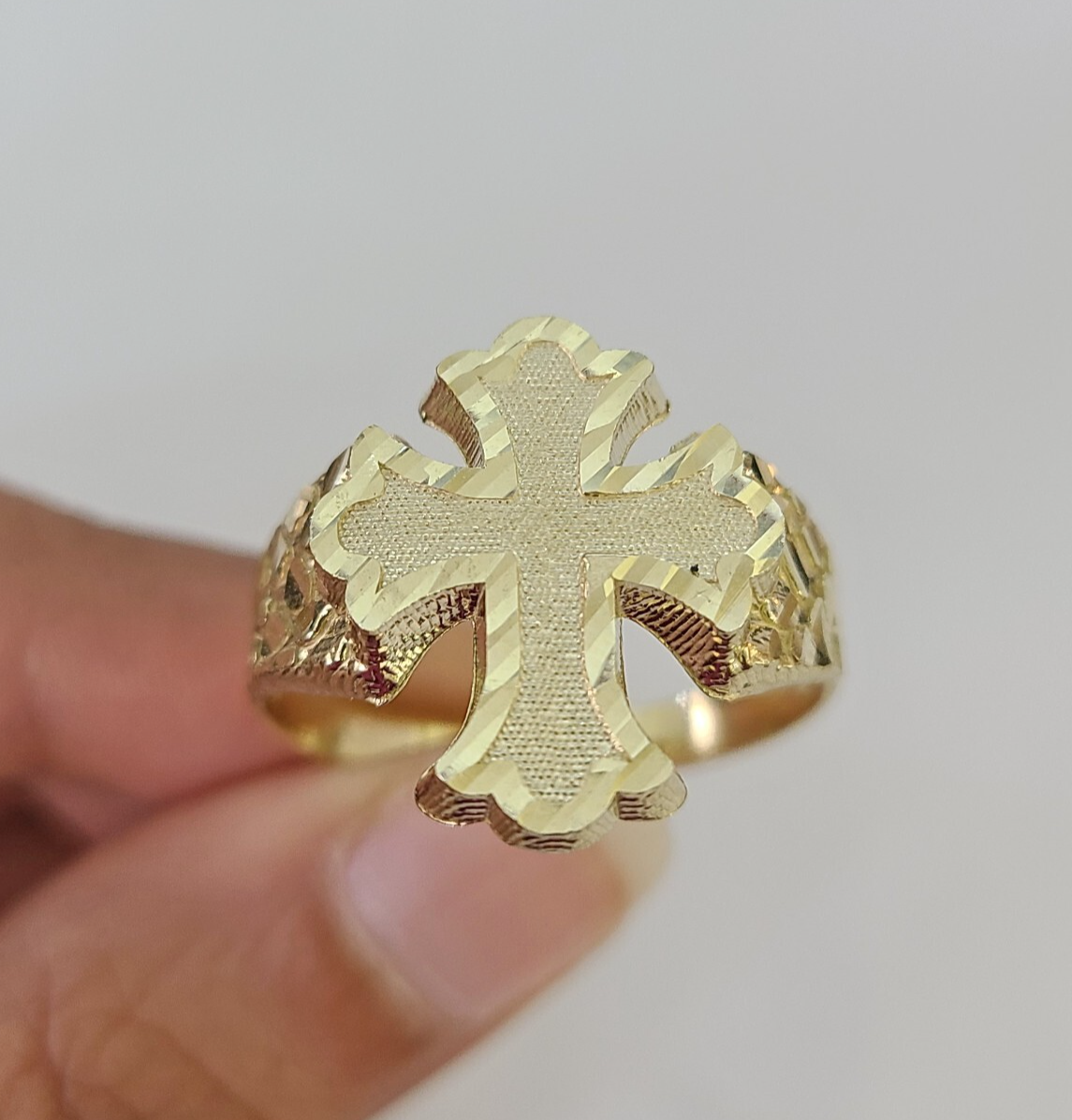 10k Yellow Gold Jesus Cross Nugget Ring