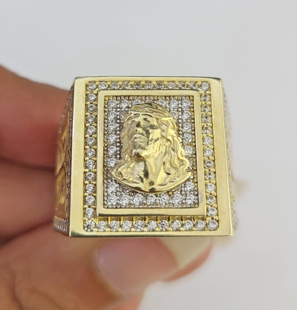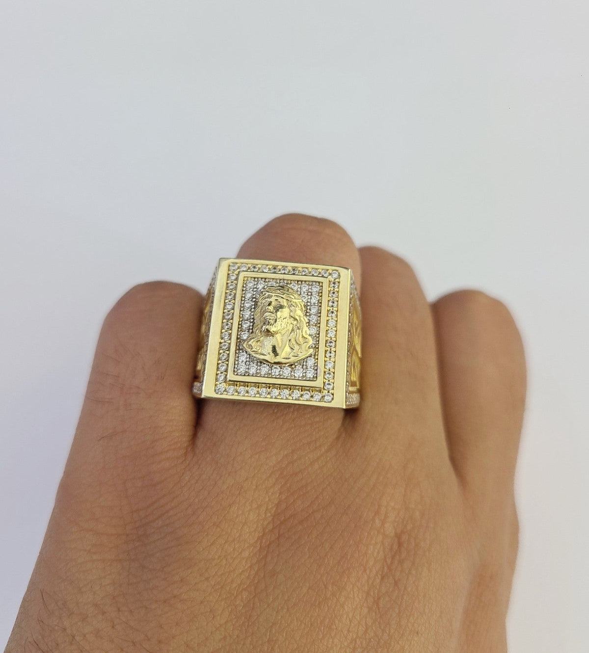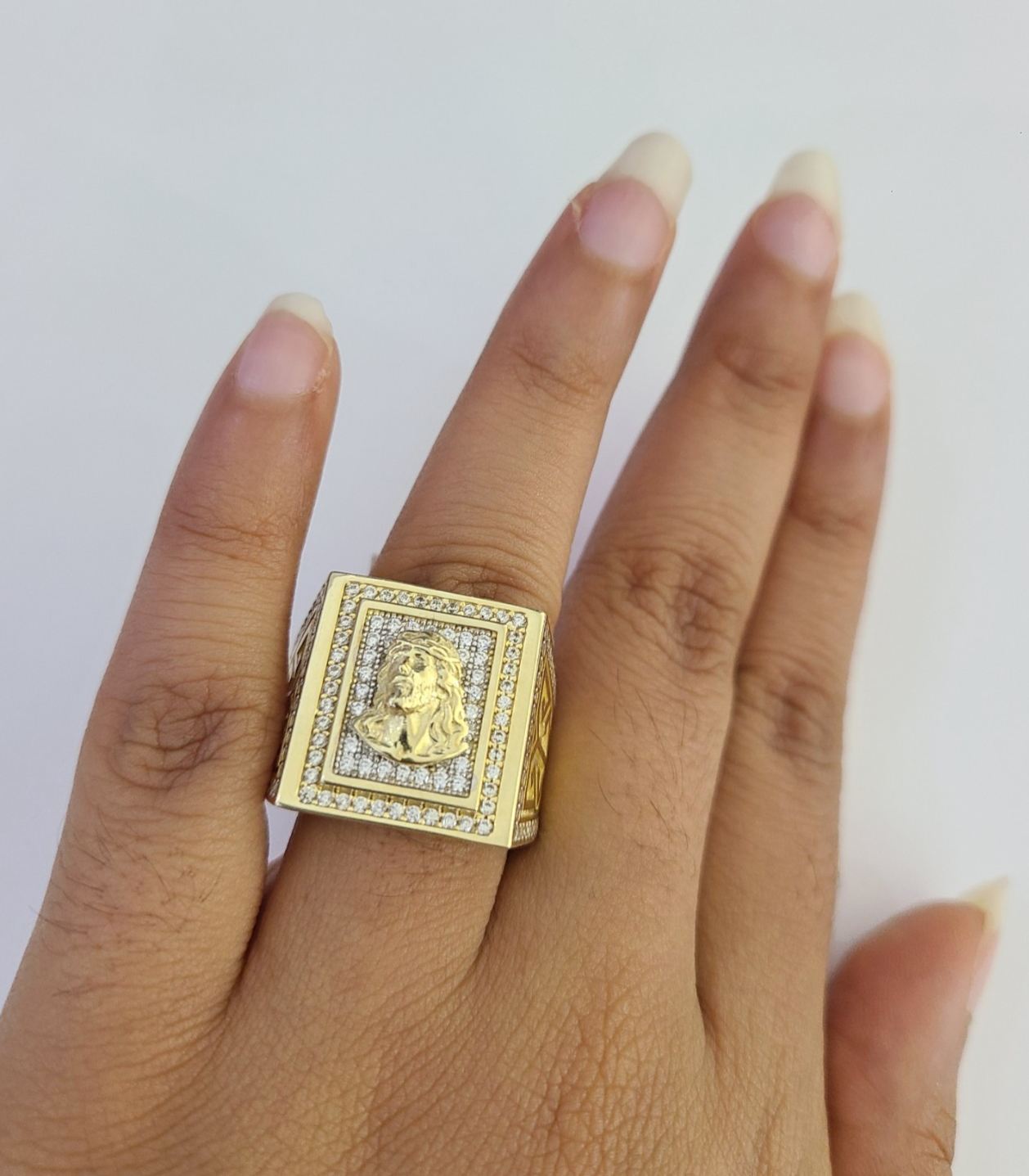 Real 10K Yellow Jesus Head Ring. The shape is Round, Traditional and Classic & Timeless. It flaunts Extra ordinary Design ring. It comes with standard size 10, and the ring is sizable. Sizing the ring will cost you extra $19.99 on your demand.