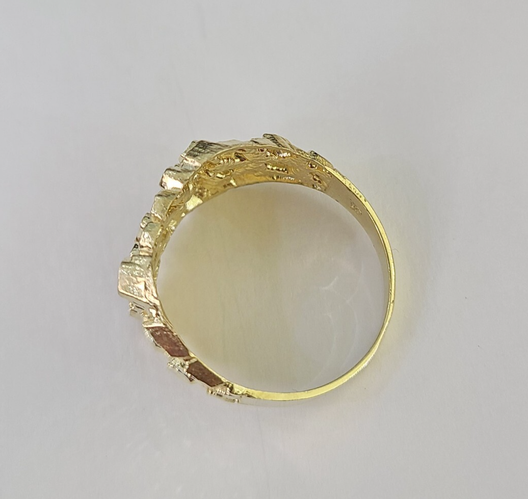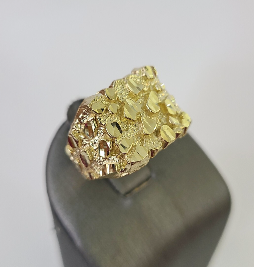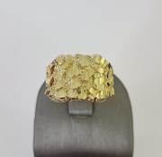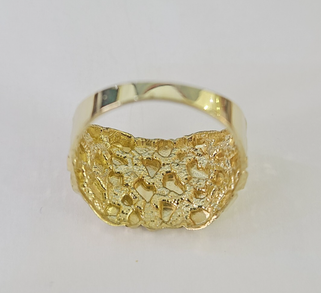 Real 10K Yellow Nugget Gold Ring. The shape is Round, Traditional and Classic & Timeless. It flaunts Extra ordinary Design ring. It comes with standard size 11, and the ring is sizable. Sizing the ring will cost you extra $19.99 on your demand.