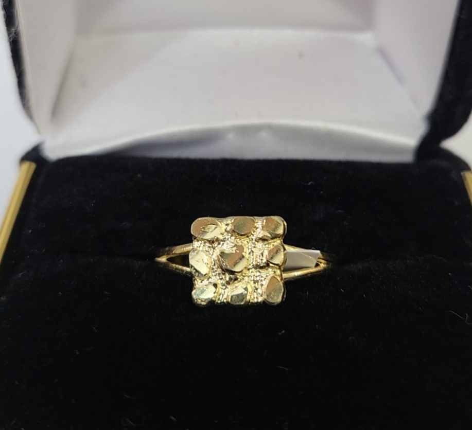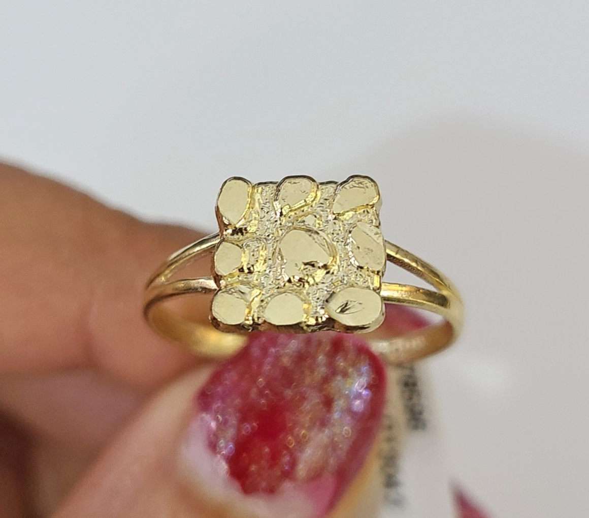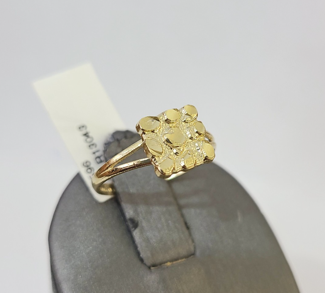 We present You with This Absolutely Stunning Real 10k Yellow Gold Square Nugget Ring. It has a detailed cut with a very good finish. These Beautiful Ring will not tarnish, discolor, or fade because they are Pure 10K Gold. Please feel free to contact us if you have any queries regarding the item.