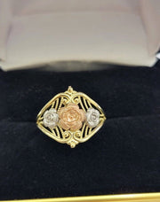 10k Trio Gold Lady Flower Ring Womens Casual Yellow Band Real 10kt Unique Design