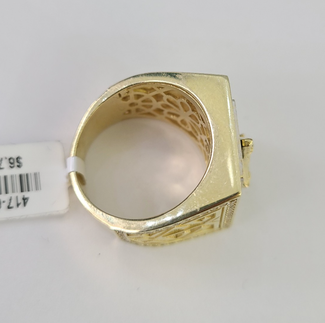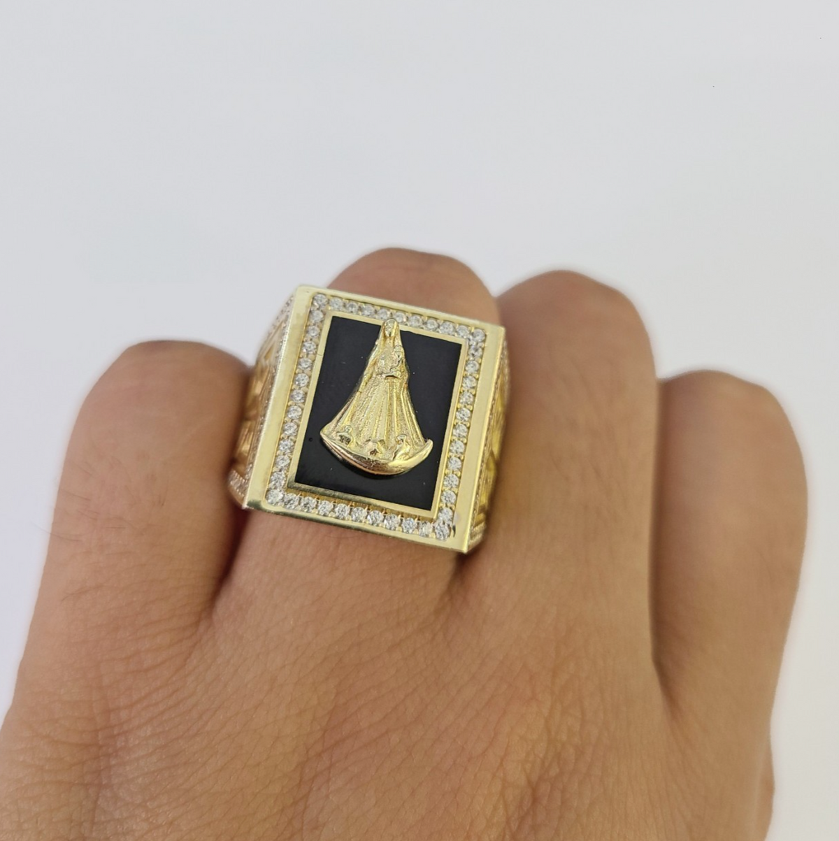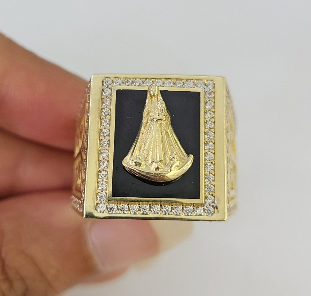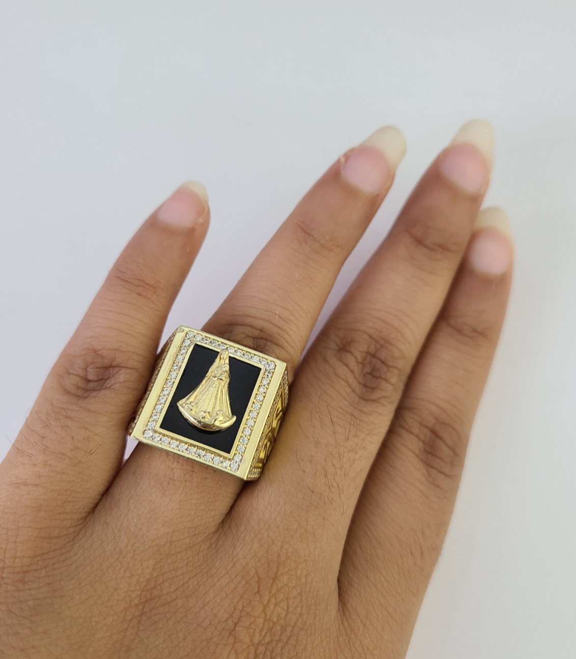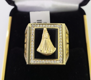 Real 10K Yellow Virgin Mary Ring. The shape is Round, Traditional and Classic & Timeless. It flaunts Extra ordinary Design ring. It comes with standard size 10, and the ring is sizable. Sizing the ring will cost you extra $19.99 on your demand.