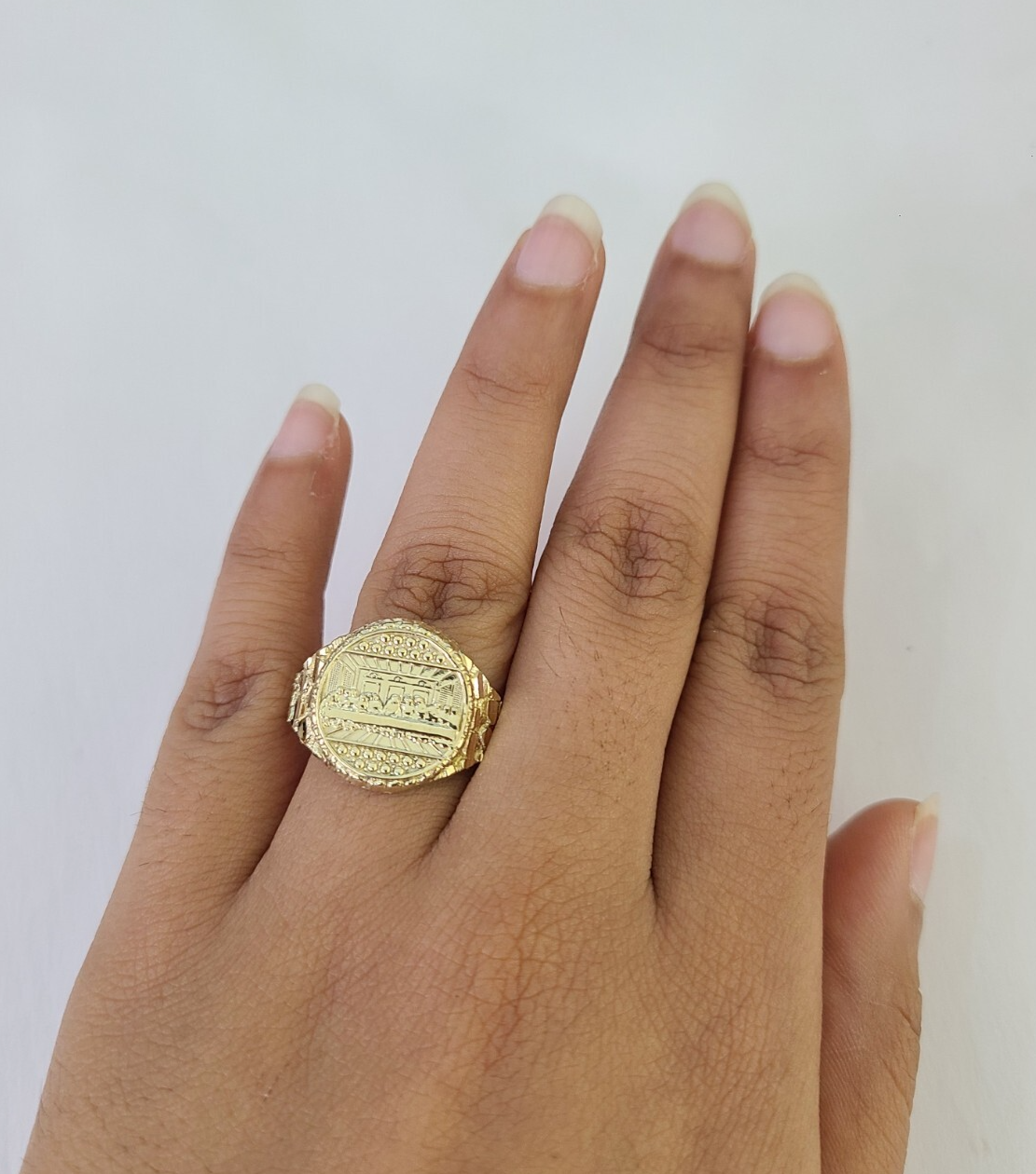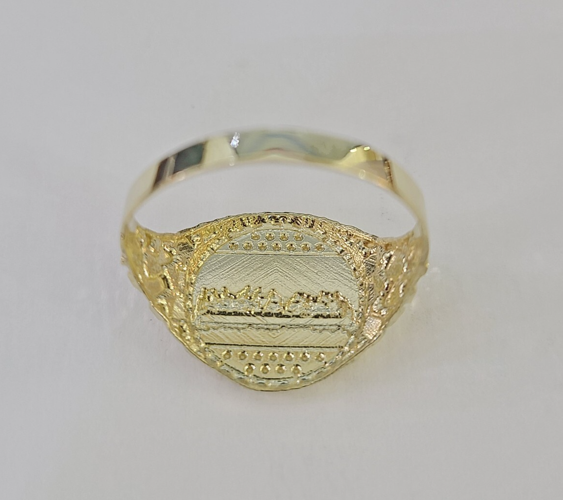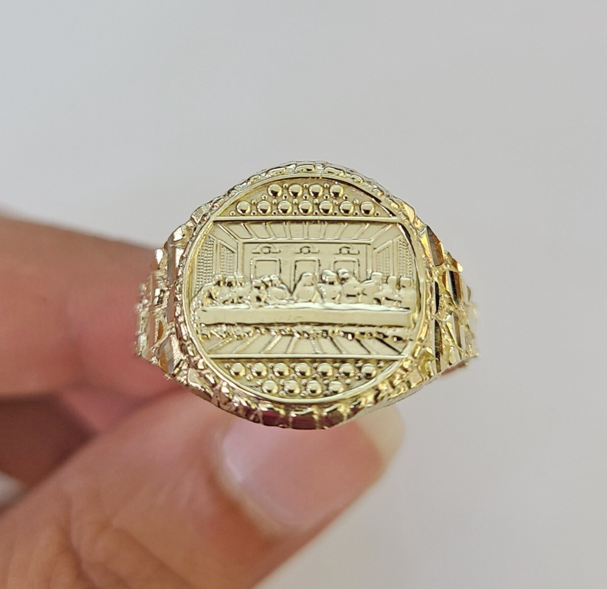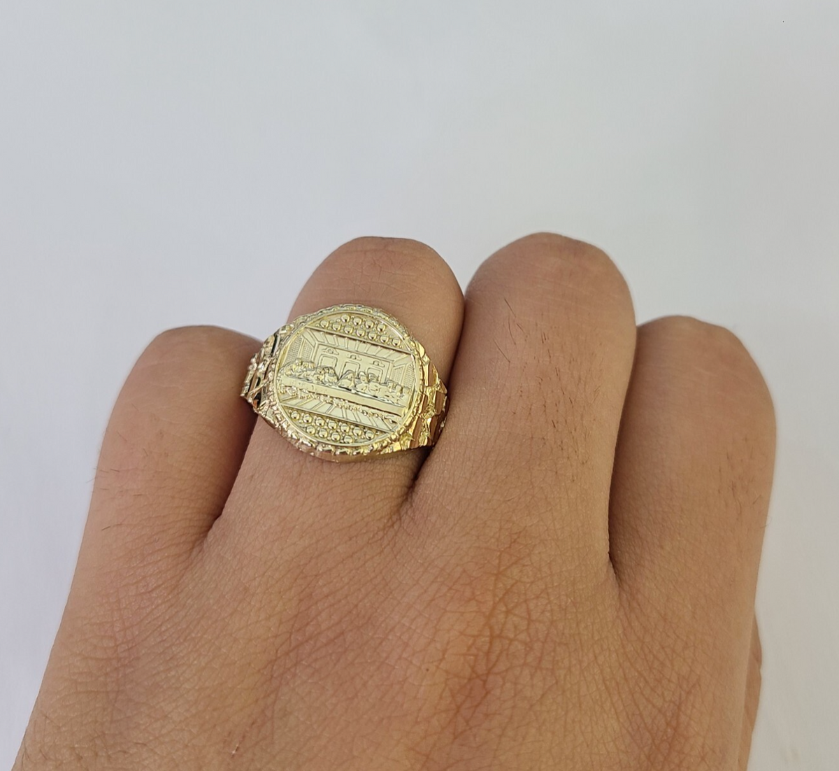 Real 10K Yellow Last Supper Gold Ring. The shape is Round, Traditional and Classic & Timeless. It flaunts Extra ordinary Design ring. It comes with standard size 11.5, and the ring is sizable. Sizing the ring will cost you extra $19.99 on your demand.��
