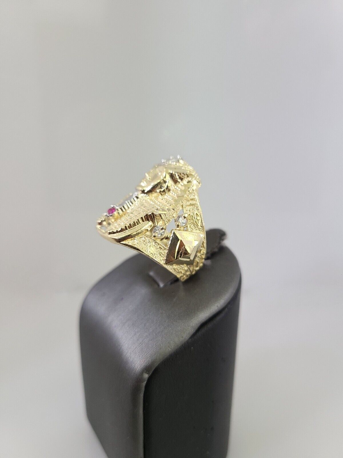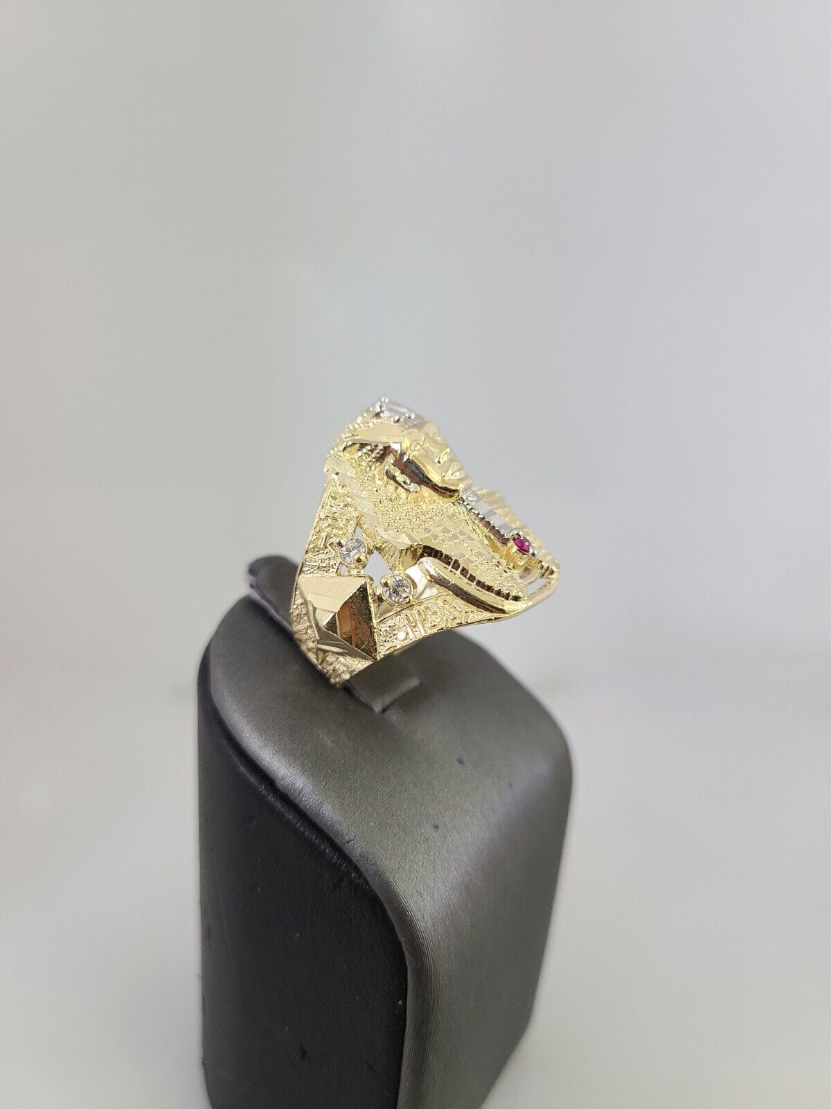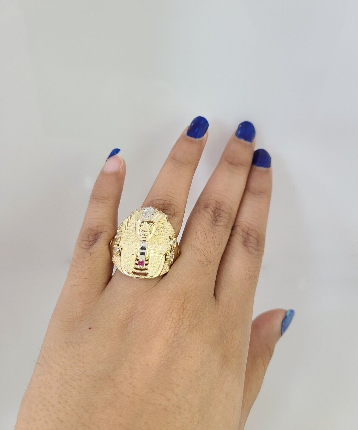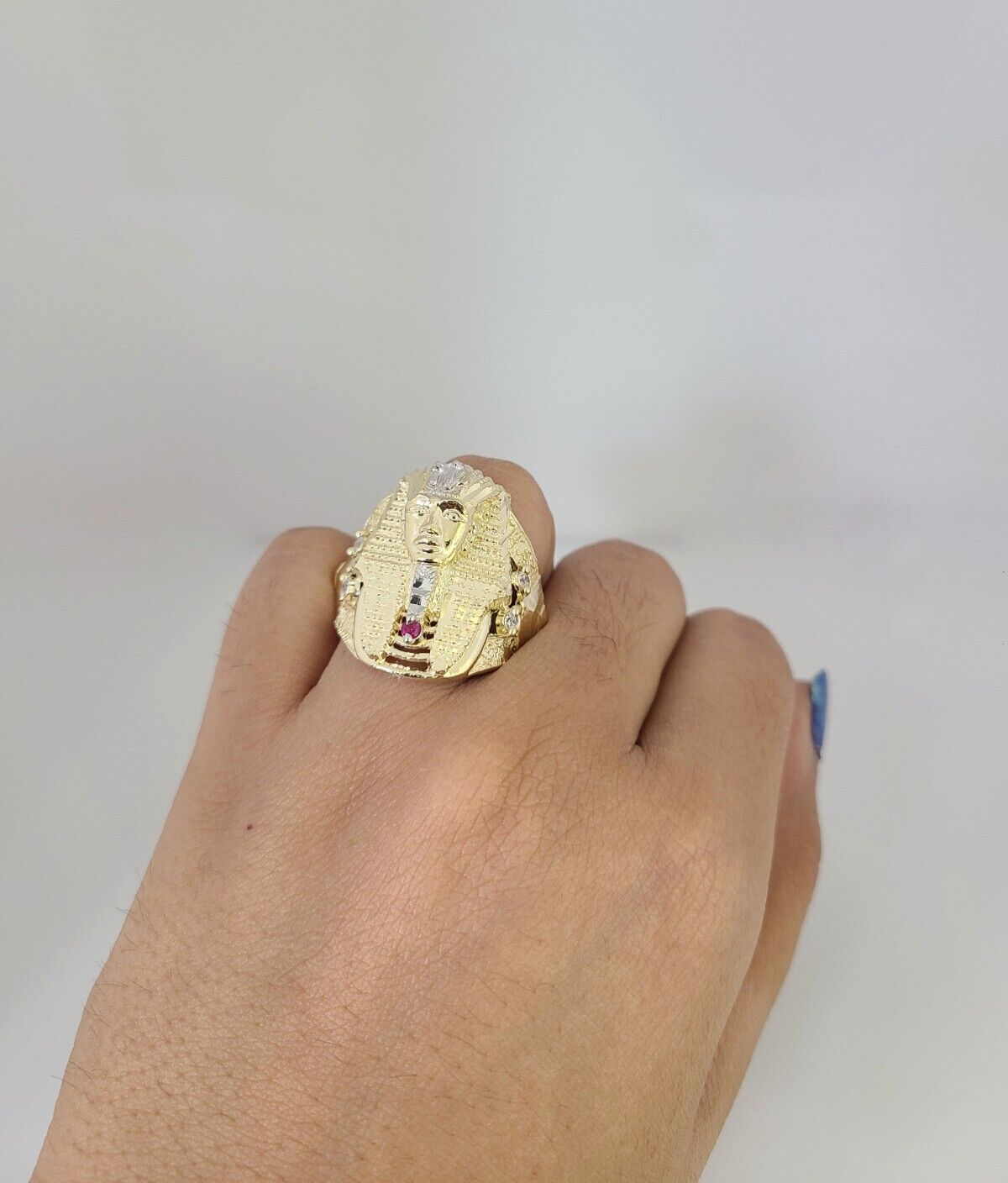 Real 10K Yellow Pharaoh Head Gold Ring for Men's. The Ring has a Excellent Cuts Which gives elegant look to the Big Ring . It comes with standard size 11.5, and the ring is sizable. Sizing the ring will cost you extra $29.99 on your demand.
