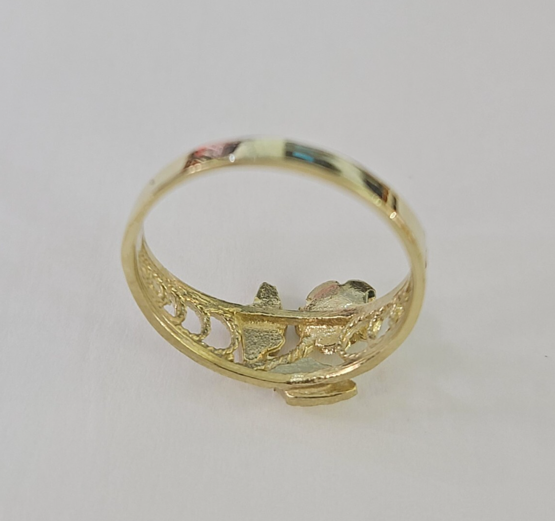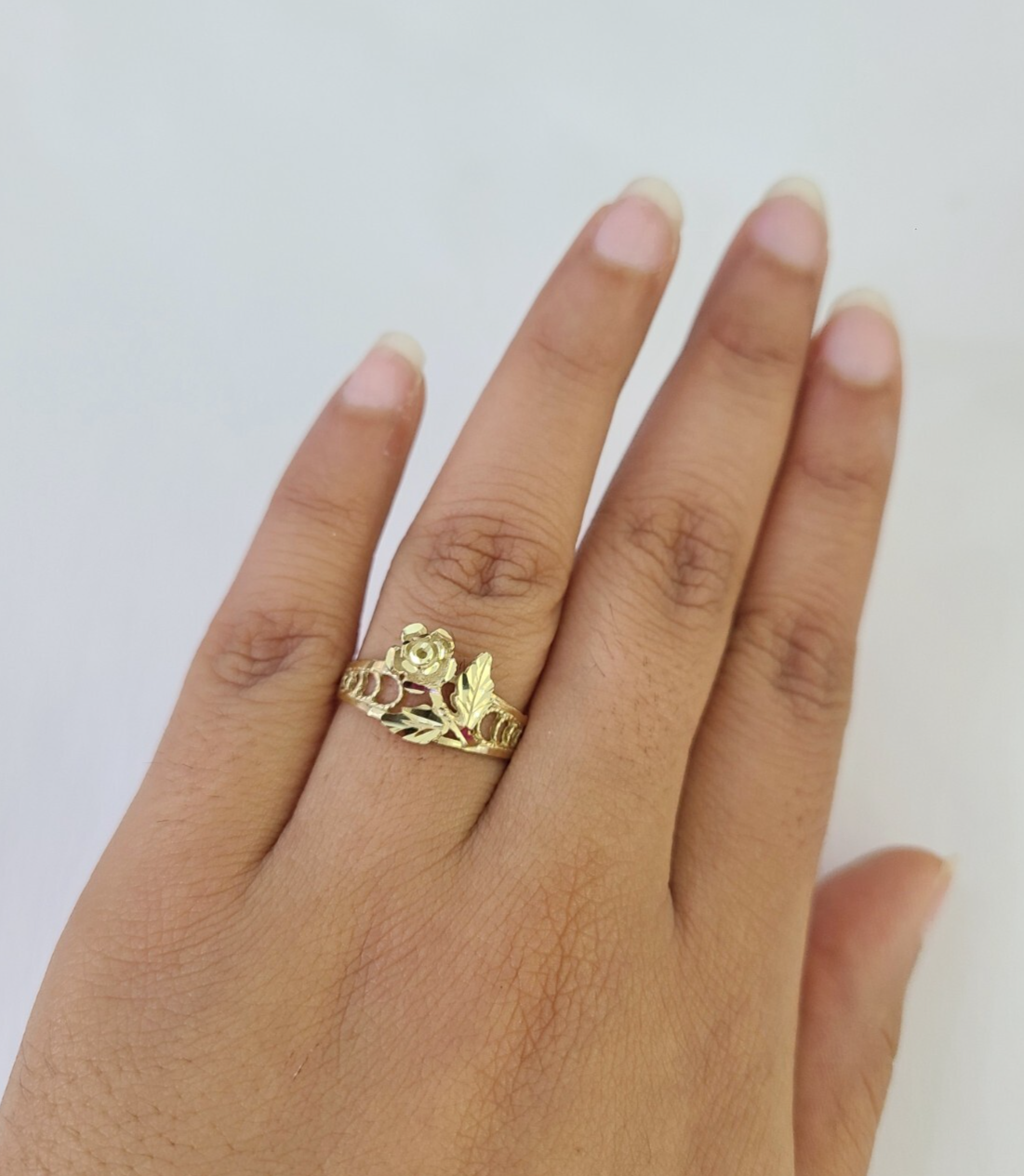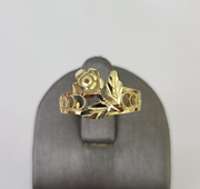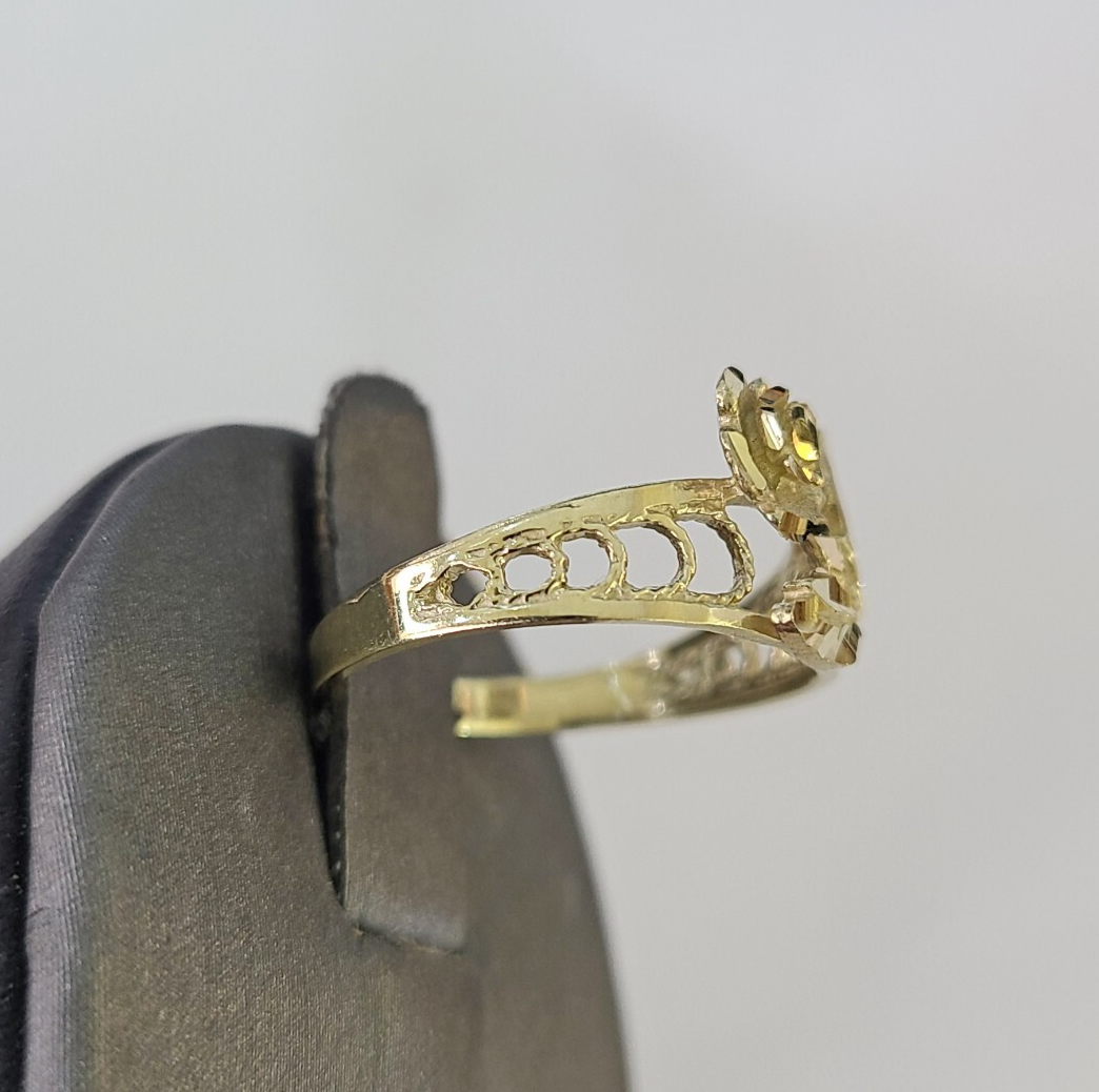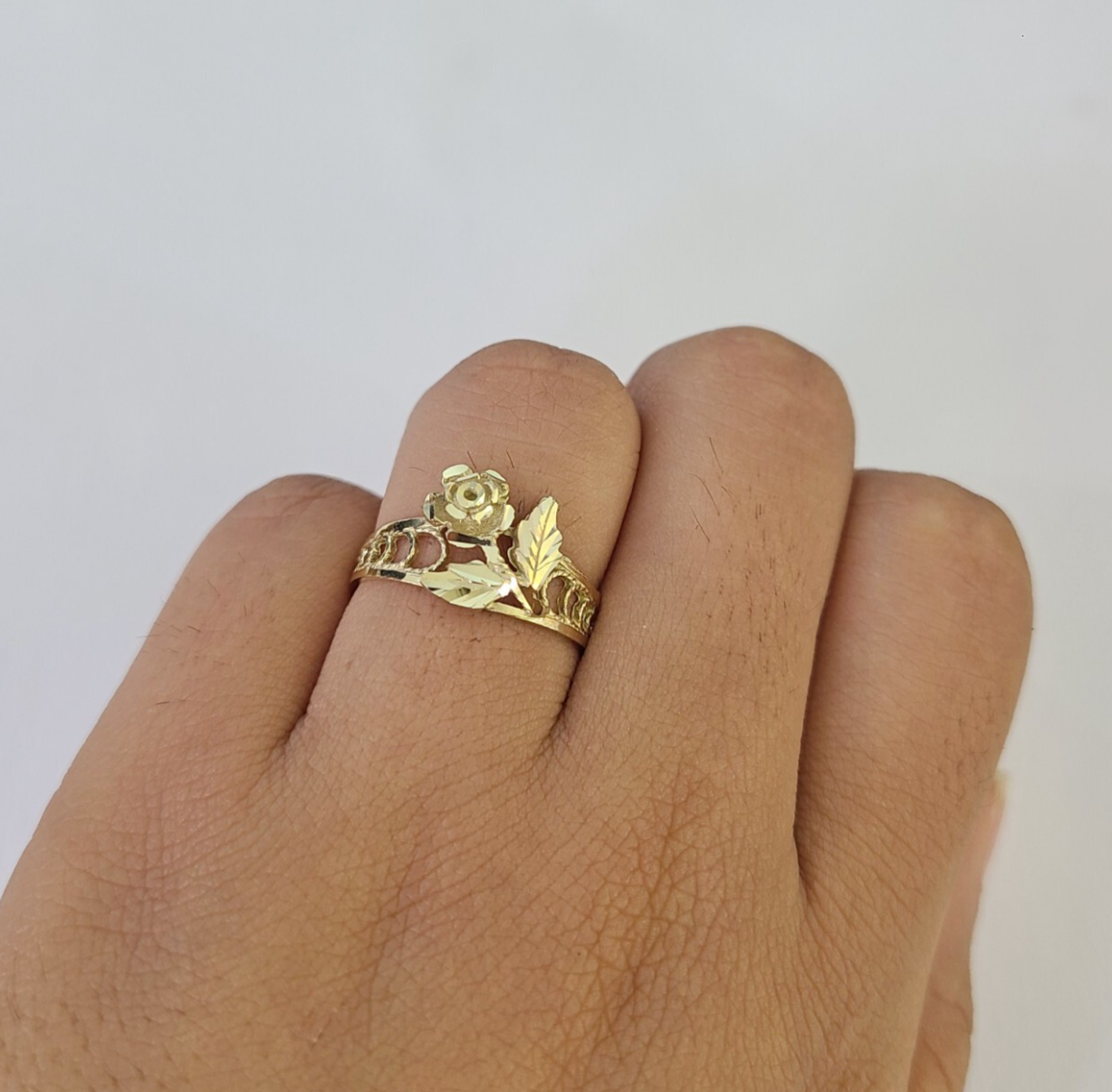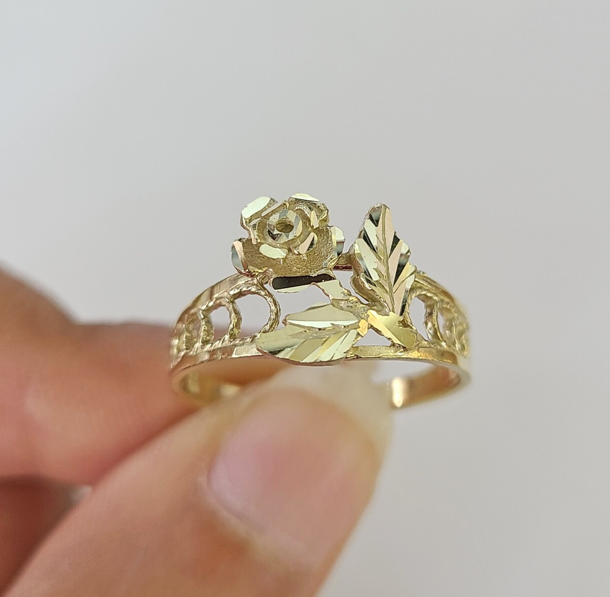 Real 10K Yellow Rose Flower Gold Ring. The shape is Round, Traditional and Classic & Timeless. It flaunts Extra ordinary Design ring. It comes with standard size 7, and the ring is sizable. Sizing the ring will cost you extra $19.99 on your demand..