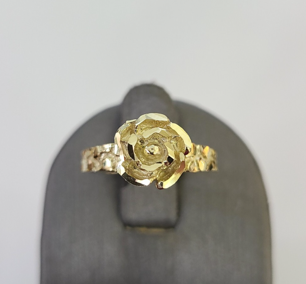 10k Yellow Gold Rose Flower Ring Nugget Casual Band Genuine Brand New All Sizes