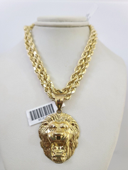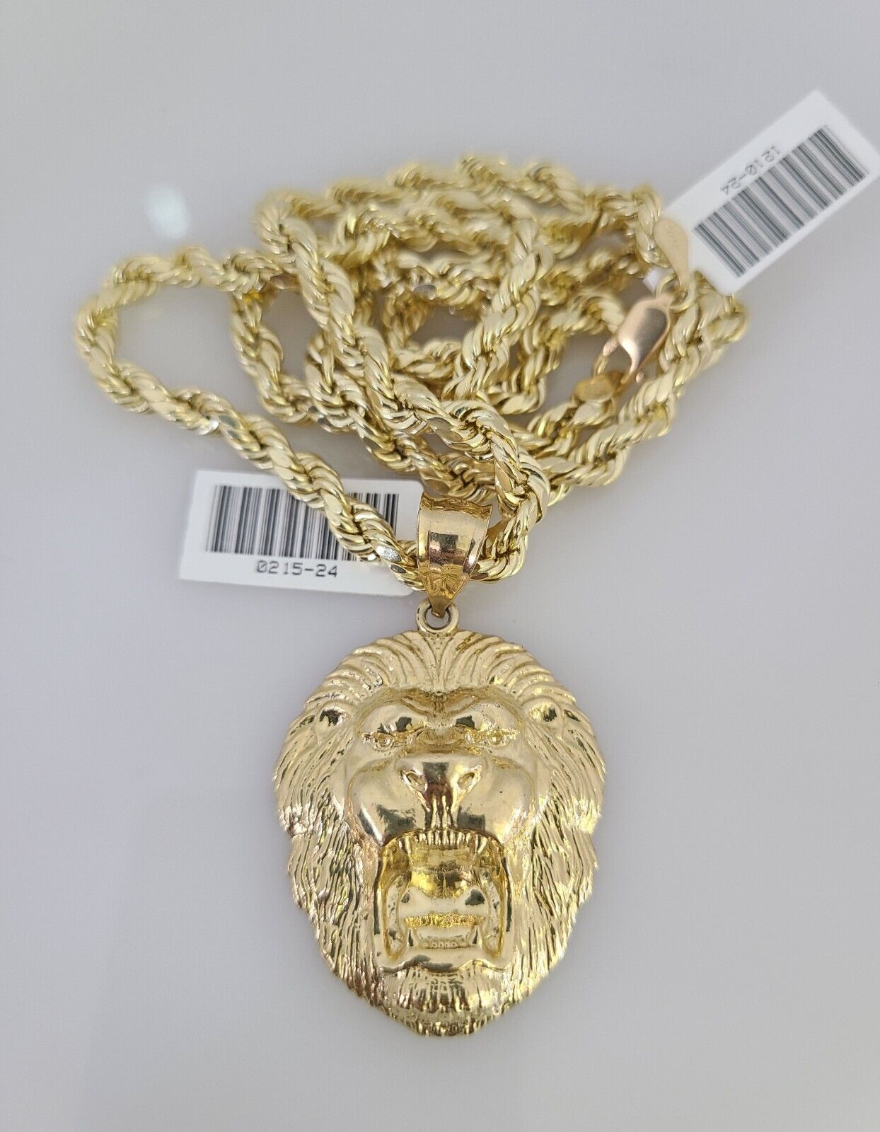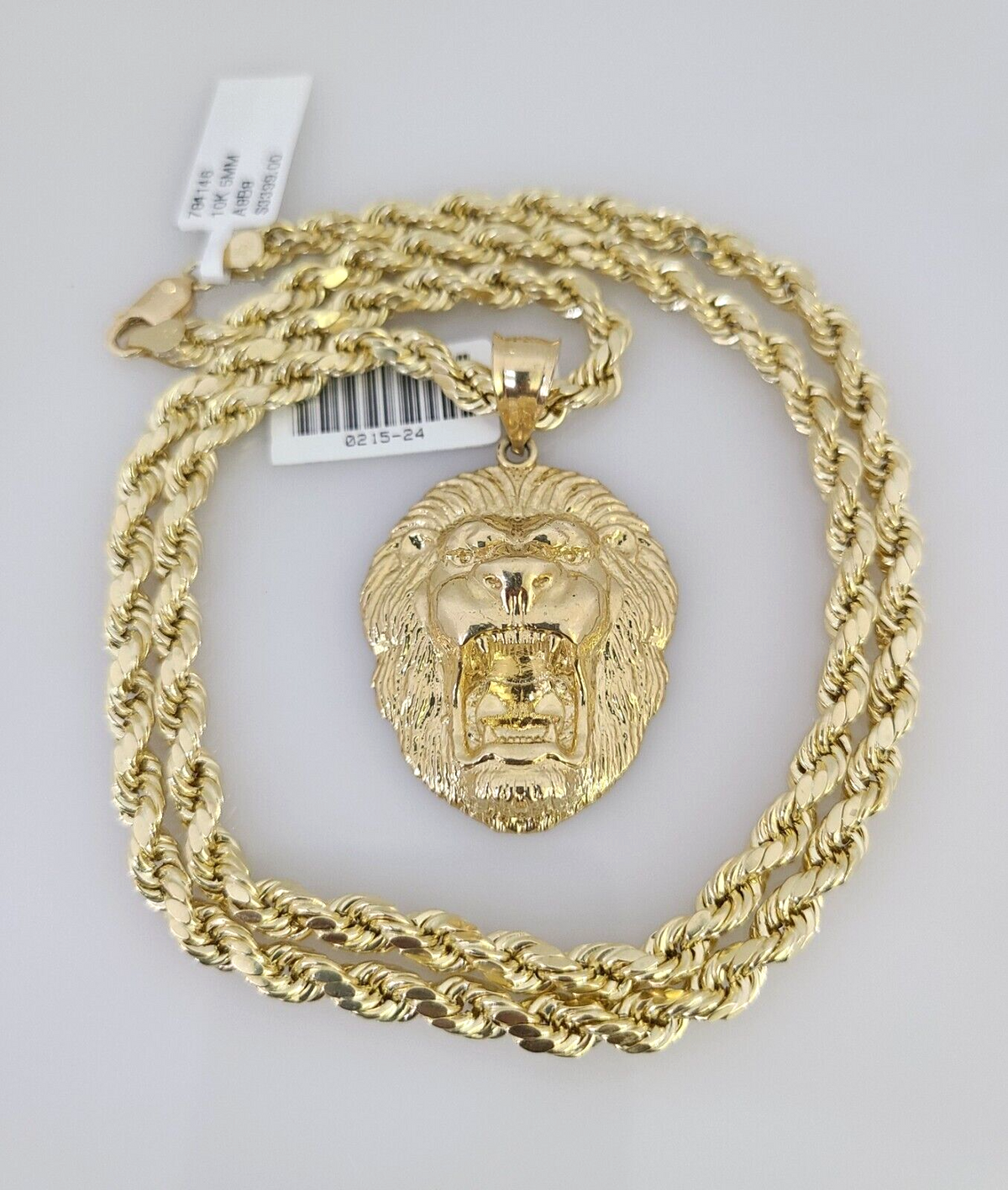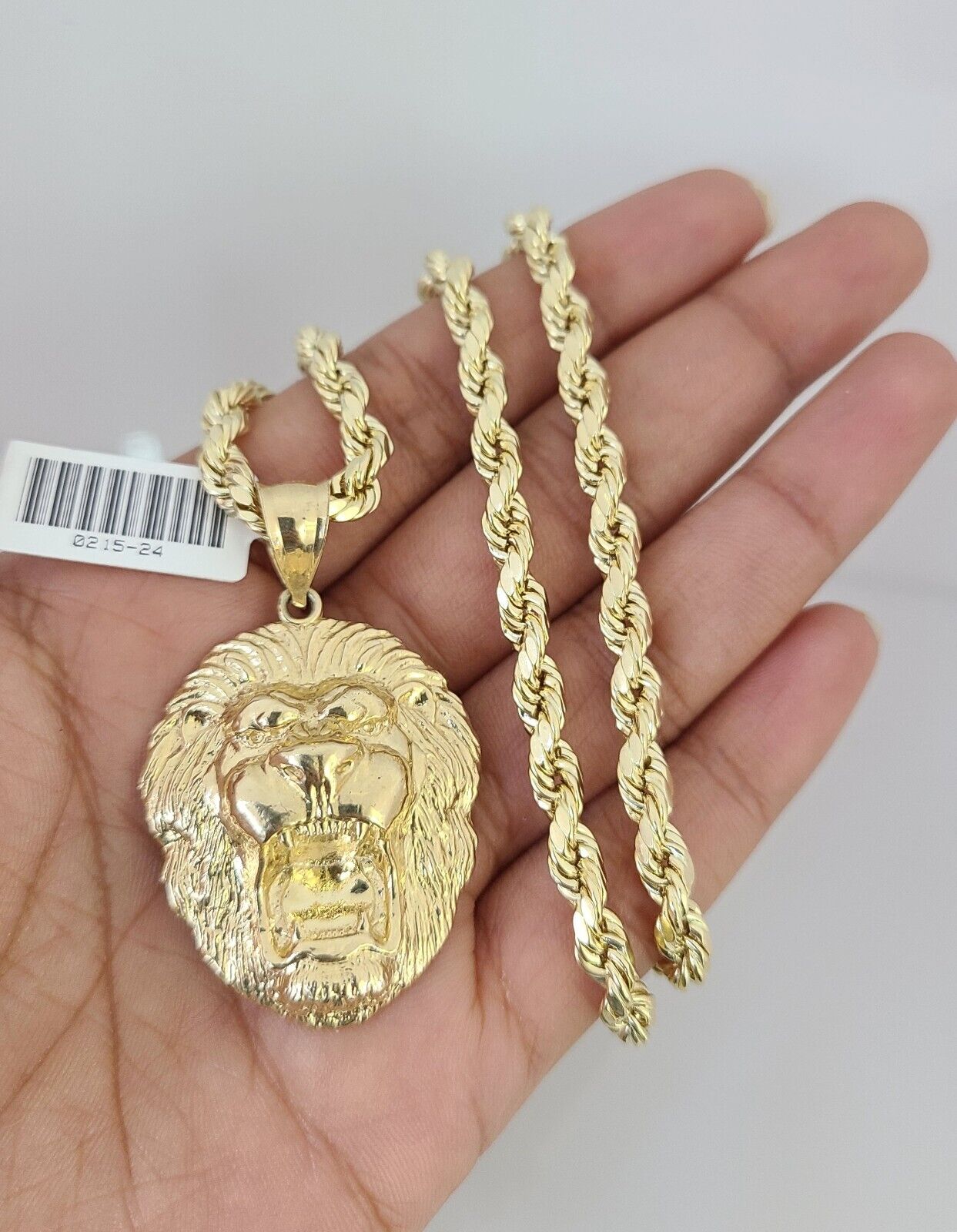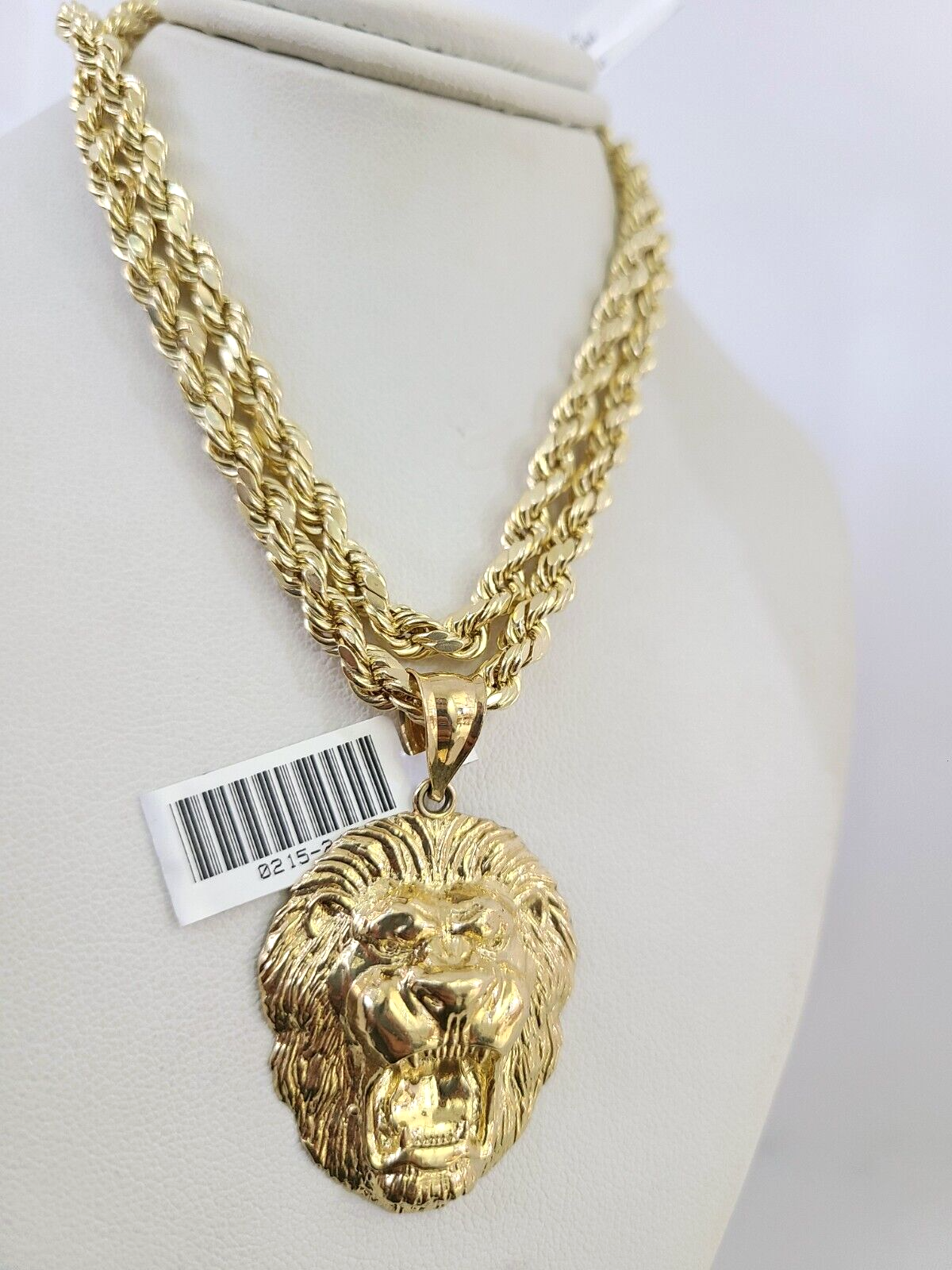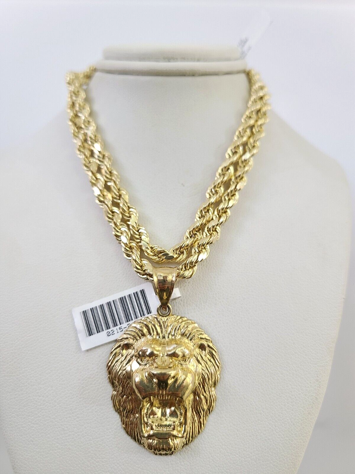 Genuine 10k Yellow Gold Rope Chain 18-30 Inch 5mm Necklace With Roaring Lion Charm design as a SET. The Various length of the Chain are 18-30 Inches . If you are not happy with the way it looks or feels, we do offer 30 - Days FREE Return shipping. Contact us for more information.