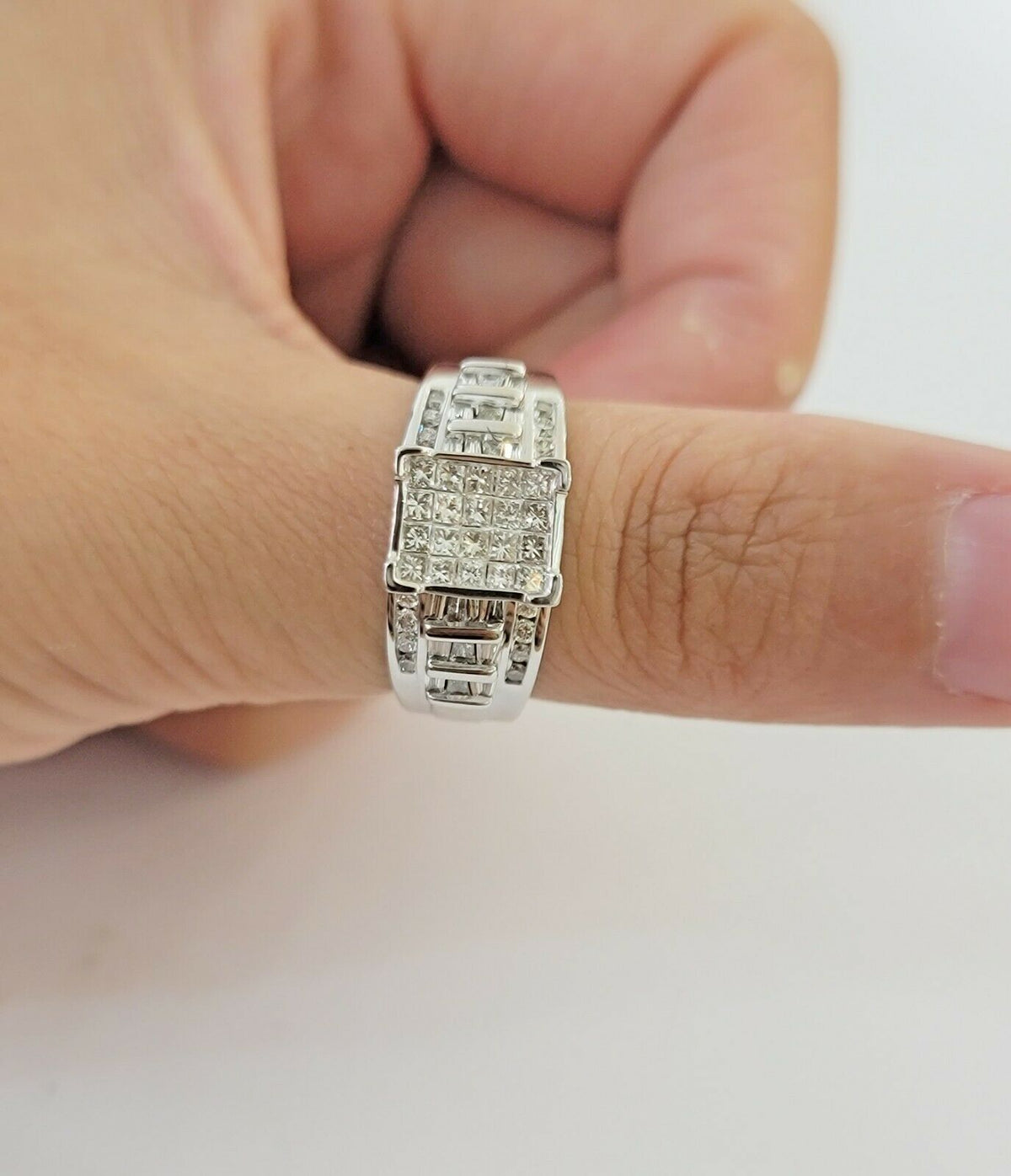 Real 14 K white gold and Real 1 Ct Diamond Cinderella Design Wedding / Engagement/ Anniversary Ring for Ladies. It has Princess cut, Baguette and Round, Very Good Quality Diamonds VS2-SI1. The Ring has Princess Cut, baguette diamonds and round diamonds that runs through and gives a channel-set style to the ring. The Diamonds are Excellent Cut. The shape of the diamond Ring is Princess cut, Baguette and Round, Traditional and Classic & Timeless.. It flaunts Extra ordinary Bridal design ring. It comes with standard size 7, and the ring is sizable. Sizing the ring will cost you extra $29.99 on your demand.