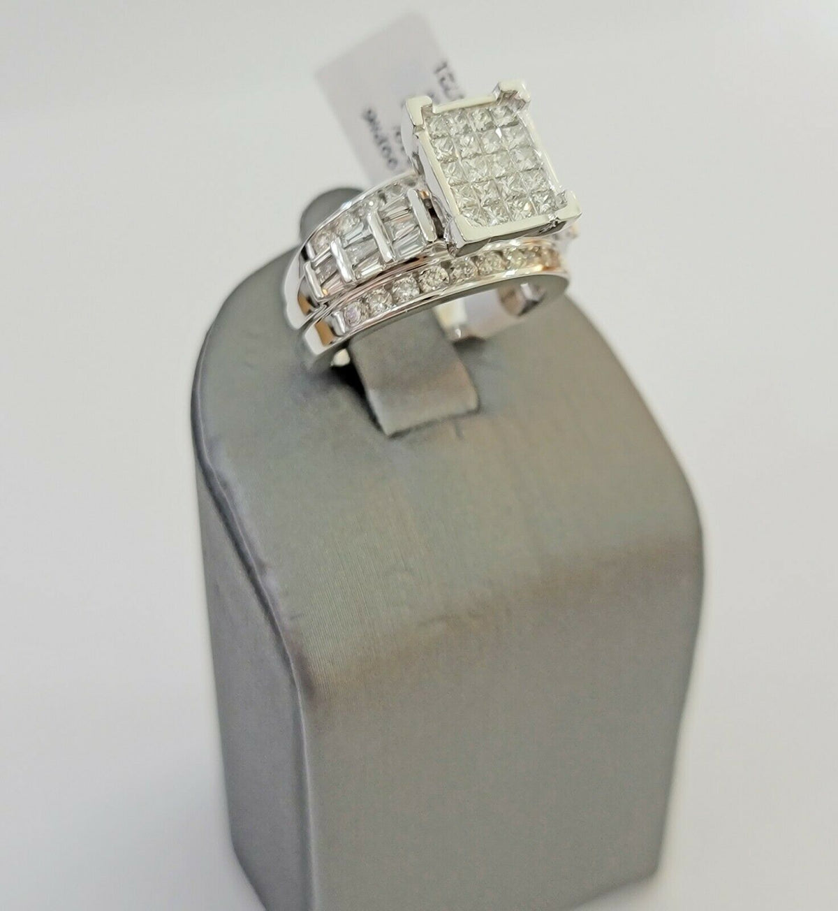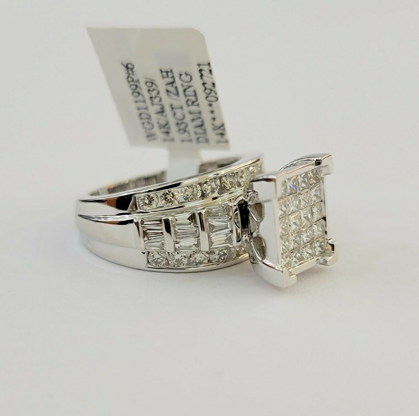 14k white Gold Ladies Ring 2 CT Diamond Princess Cut, Baguette, Round, REAL 14kt