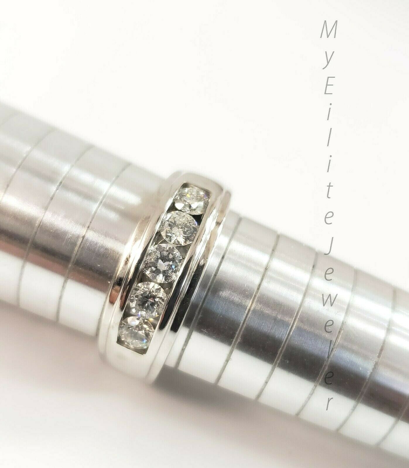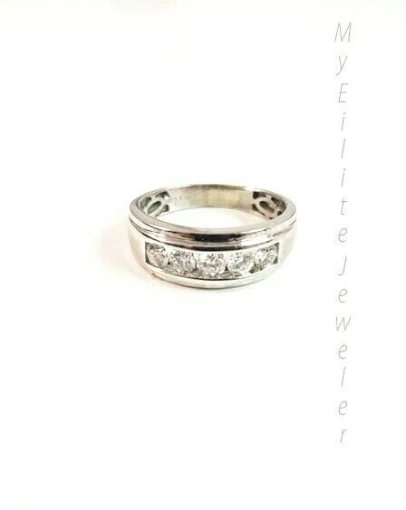 Real 10 K White Gold and Real 1 CT Solitaire diamond Ring for Men's. It has Round, Very Good Quality Diamonds VSI-VSII. The stone are Round Cut Solitaire Diamonds runs through the half of the upper sank, it has 5 Big Solitaire diamonds in a row that runs through the upper sank of the ring, this gives elegant look to the Big Band Ring . The Diamond color is G-H. The Diamonds are Excellent Round Cut. The shape of the diamond Ring is Round, Traditional and Classic & Timeless. It flaunts Extra ordinary Bridal Design ring. It comes with standard size 10, and the ring is sizable. Sizing the ring will cost you extra $19.99 on your demand.