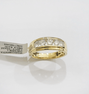 Real 14 K Yellow Gold and Real 1 CT Solitaire Diamond Wedding/ Engagement Ring for Men's. It has 5 Round Diamonds, Very Good Quality Diamonds I1-SI1. The Ring has Solitaire diamond as a main stone that are round cut diamonds runs through and gives a channel-setting style to the ring. The Diamonds are Excellent Cut. The shape of the diamond Ring is Round, Traditional and Classic & Timeless. It comes with standard size 10, and the ring is sizable. Sizing the ring will cost you extra $29.99 on your demand.
