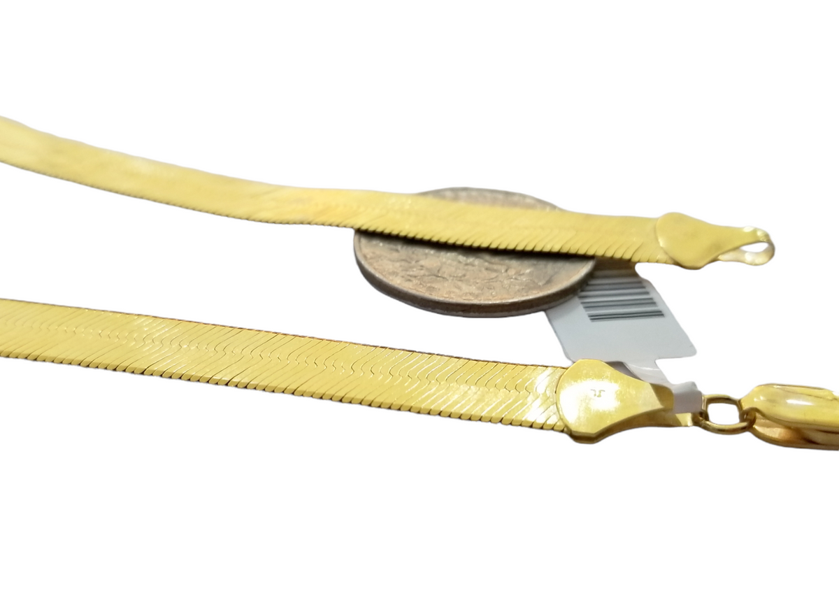 Is Presenting You with This Absolutely Stunning Real 10k Yellow Gold Herringbone Necklace, Chain , 9mm, 18 Inches. These Beautiful Necklaces will not tarnish, discolor, or fade because they are Pure 10K Gold.