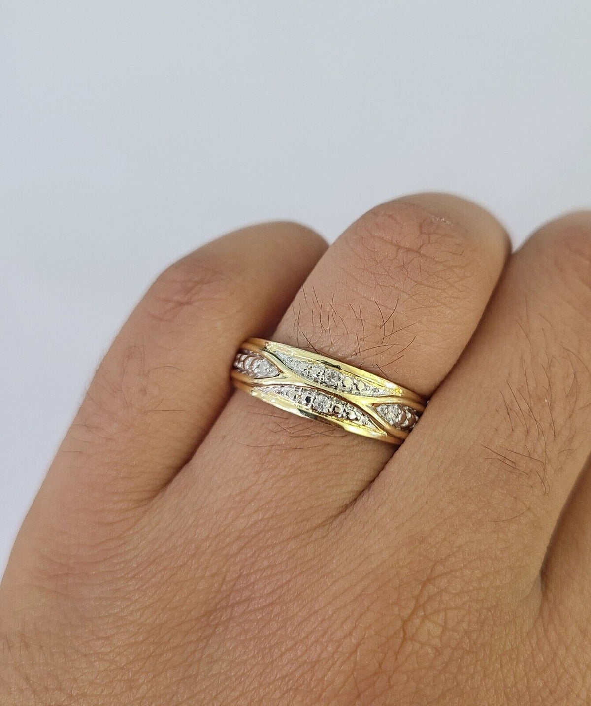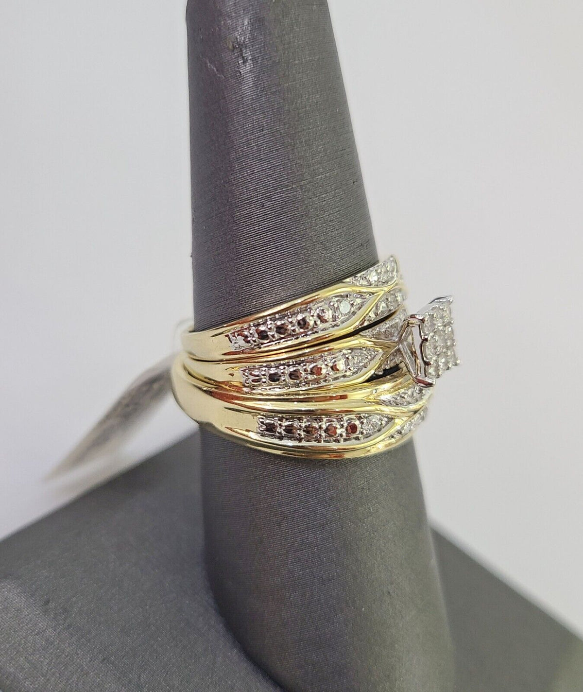 Real 10k Yellow Gold Diamond Ring Trio Set