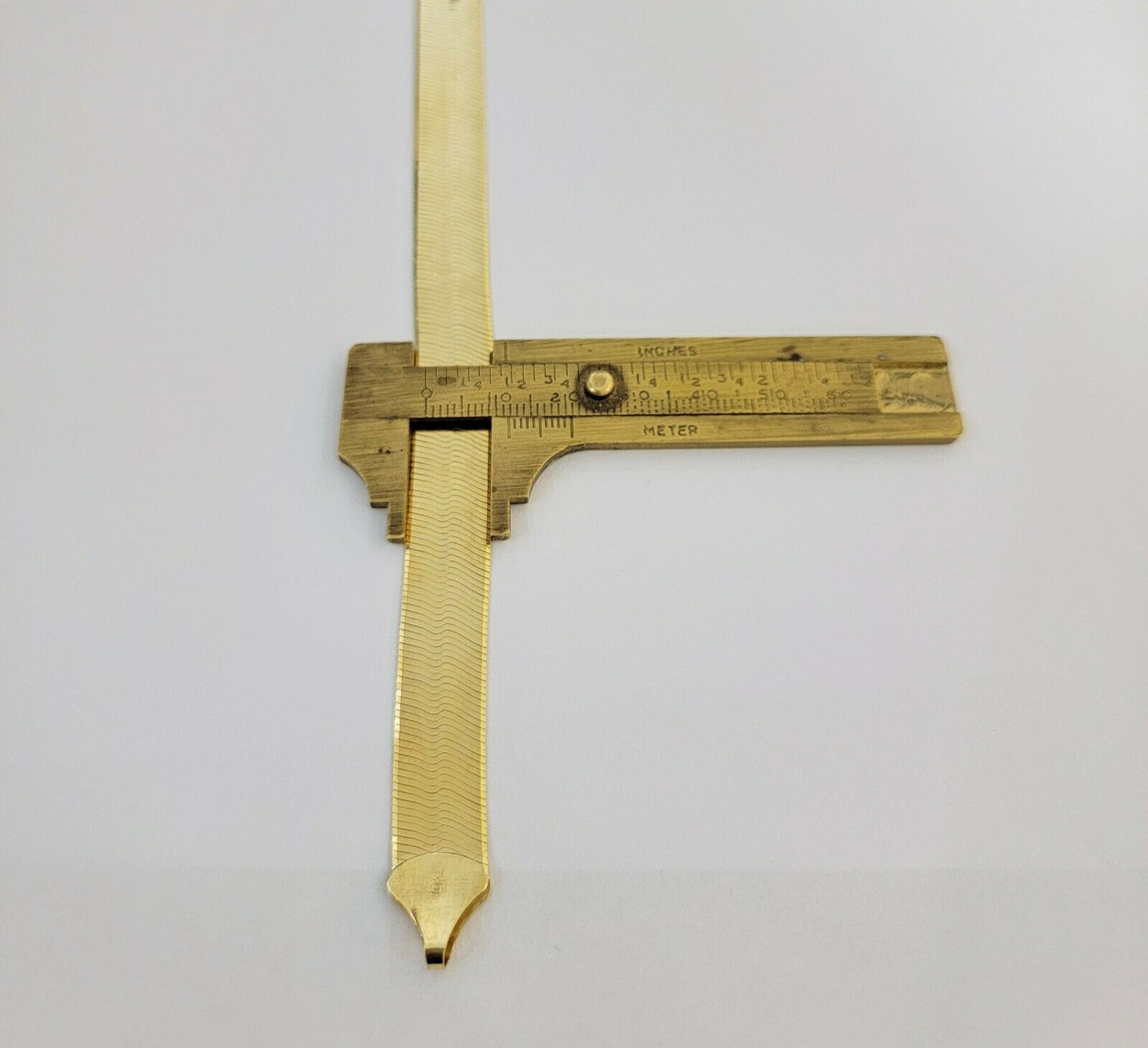 Solid 10KT Yellow Gold ( Real , Not plated , Not filled )Herringbone Necklace/ chain. The Width of the necklace is 12 MM in Length 18-24 Inches. The necklace is 100% guaranteed 10k yellow gold and have been professionally tested and stamped 10k for purity authenticity. We guarantee the purity of the gold to be 10k, and the chains are NOT GOLD PLATED, NOT FILLED. If you are not happy with the way it looks or feels, we do offer
