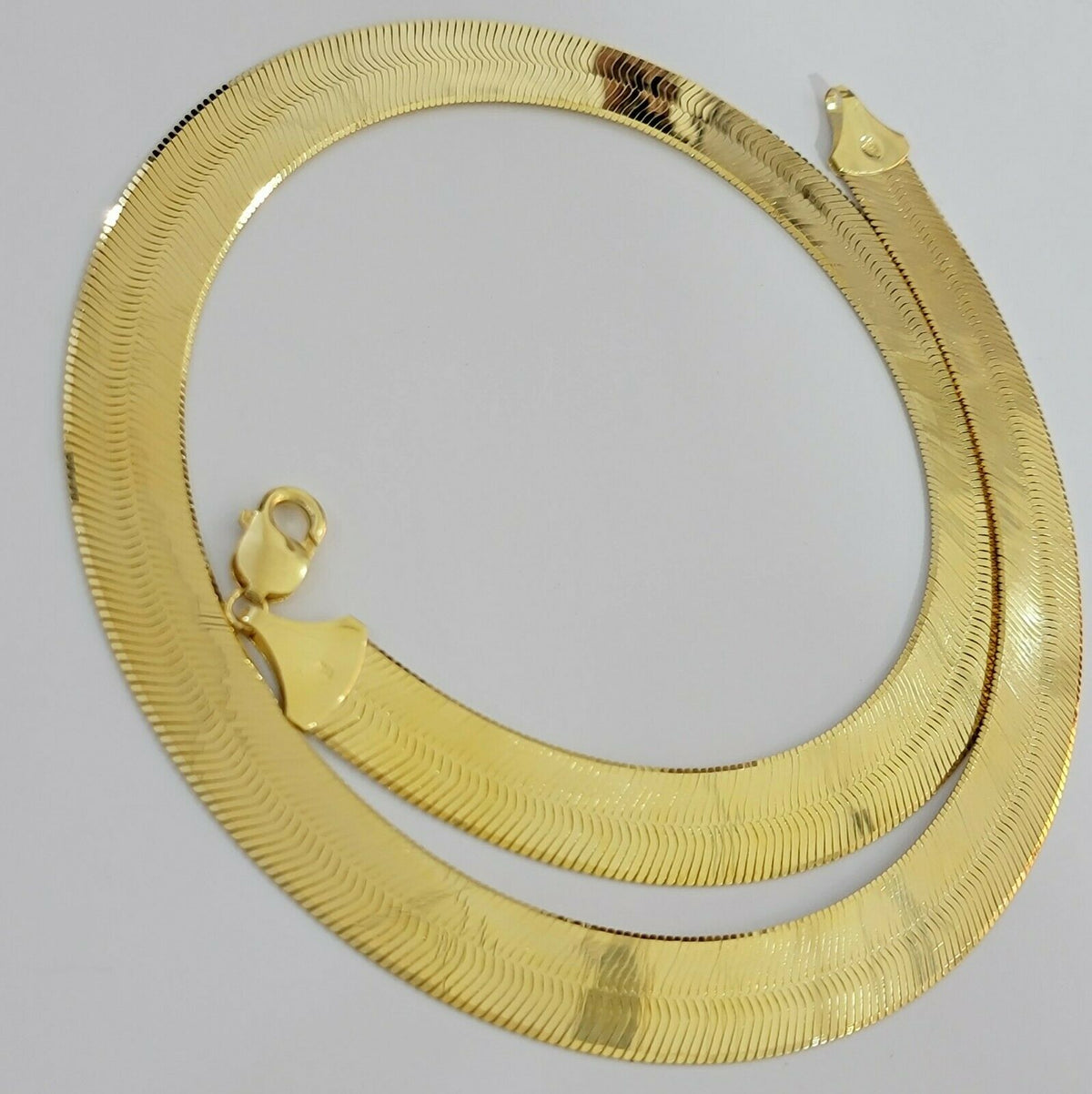 Solid 10KT Yellow Gold ( Real , Not plated , Not filled )Herringbone Necklace/ chain. The Width of the necklace is 15 MM in Length 18-24 Inches. The necklace is 100% guaranteed 10k yellow gold and have been professionally tested and stamped 10k for purity authenticity. We guarantee the purity of the gold to be 10k, and the chains are NOT GOLD PLATED, NOT FILLED. If you are not happy with the way it looks or feels, we do offer