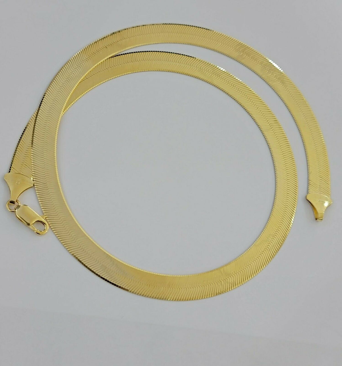 Solid 10KT Yellow Gold ( Real , Not plated , Not filled )Herringbone Necklace/ chain. The Width of the necklace is 9 MM in Length 18-22 Inches. The necklace is 100% guaranteed 10k yellow gold and have been professionally tested and stamped 10k for purity authenticity. We guarantee the purity of the gold to be 10k, and the chains are NOT GOLD PLATED, NOT FILLED. If you are not happy with the way it looks or feels, we do offer