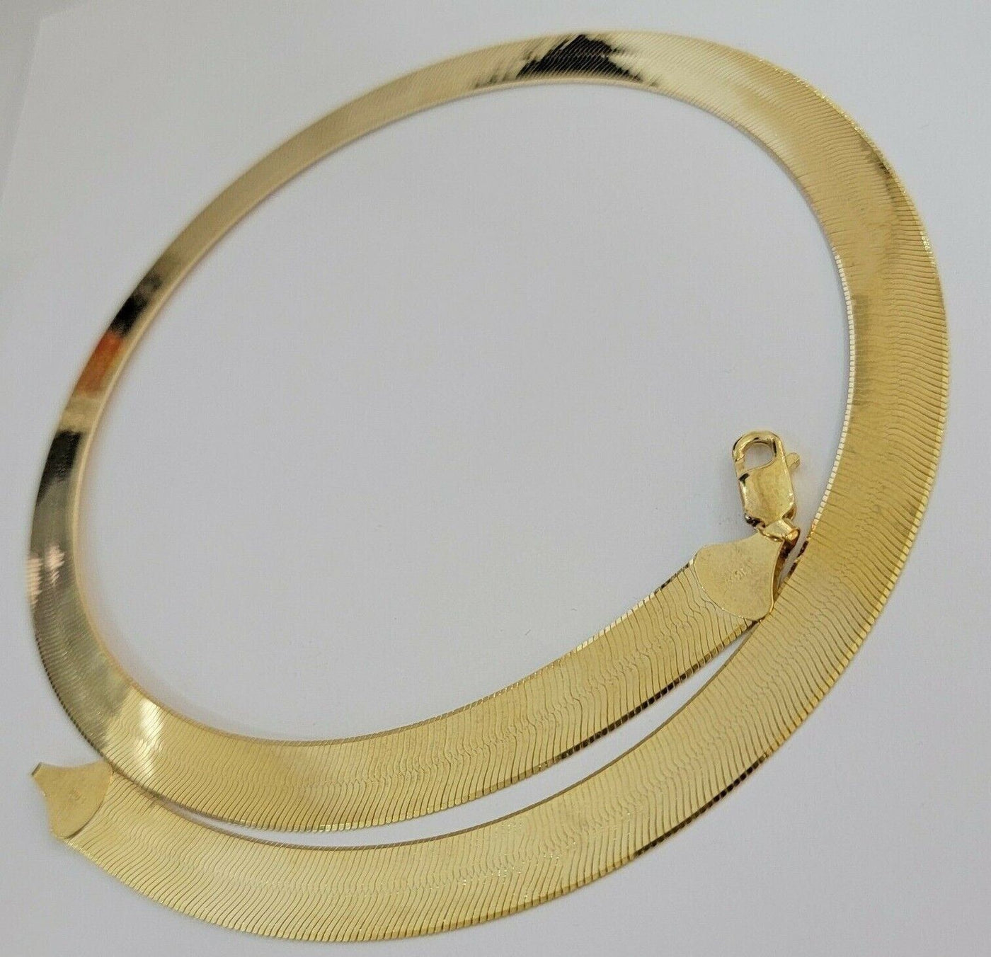 Real 10k Yellow Gold 12mm Herring Bone Chain Necklace 22'' Inch Lobster lock