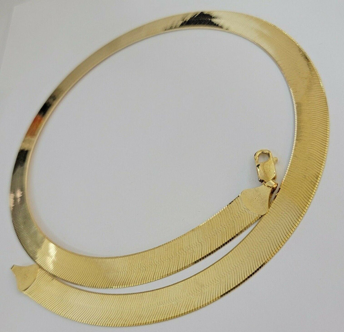 Real 10k Yellow Gold 12mm Herringbone Chain Necklace 24'' Inch Lobster lock Mens