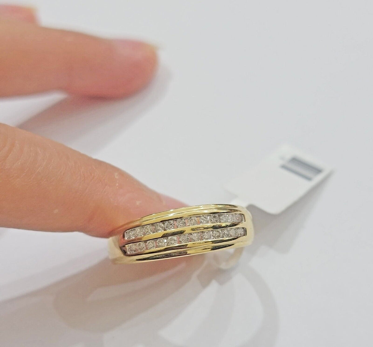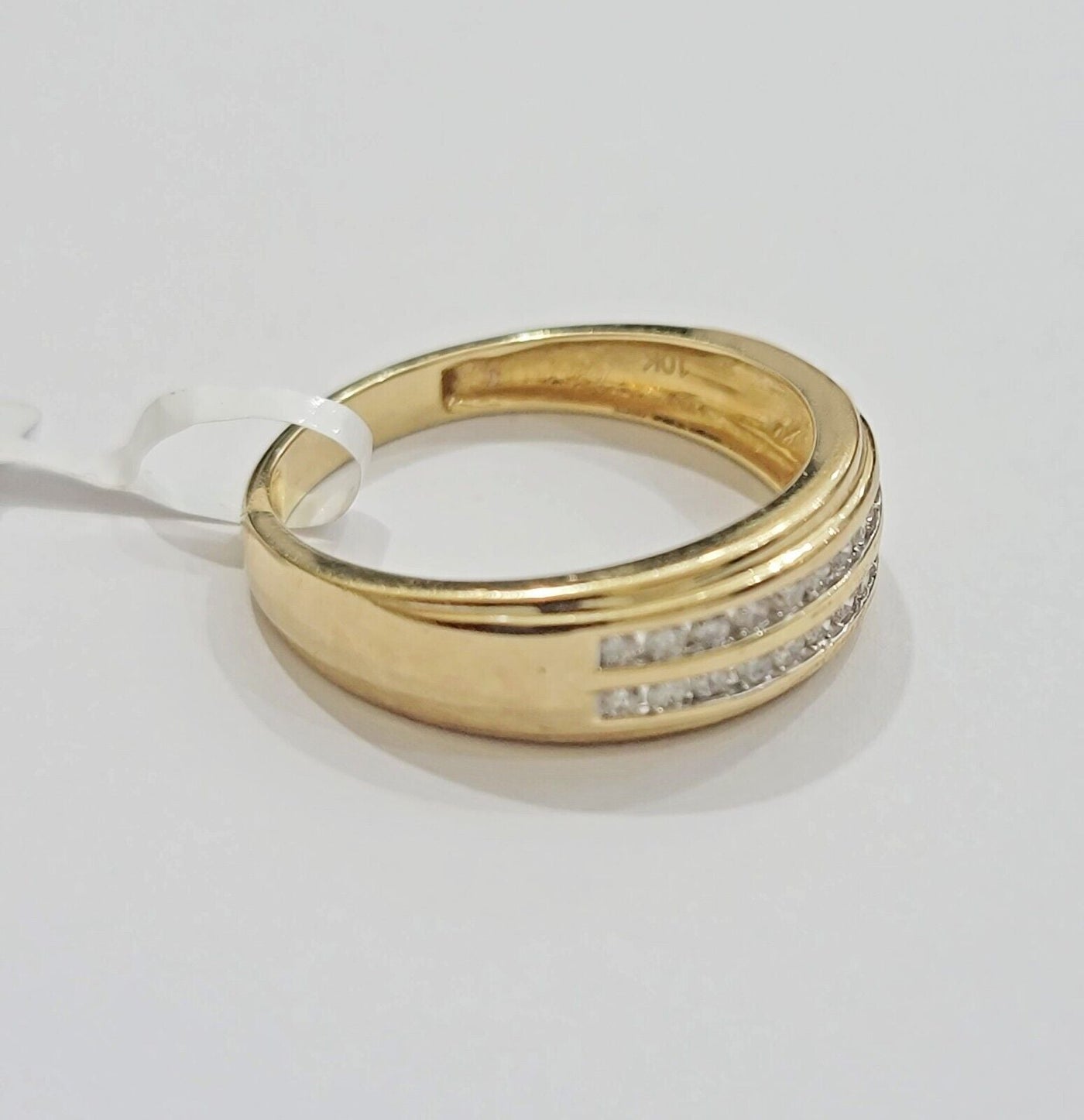 Real 10k Gold & Diamond Mens Band Wedding Engagement Ring REAL 10kt Yellow Gold