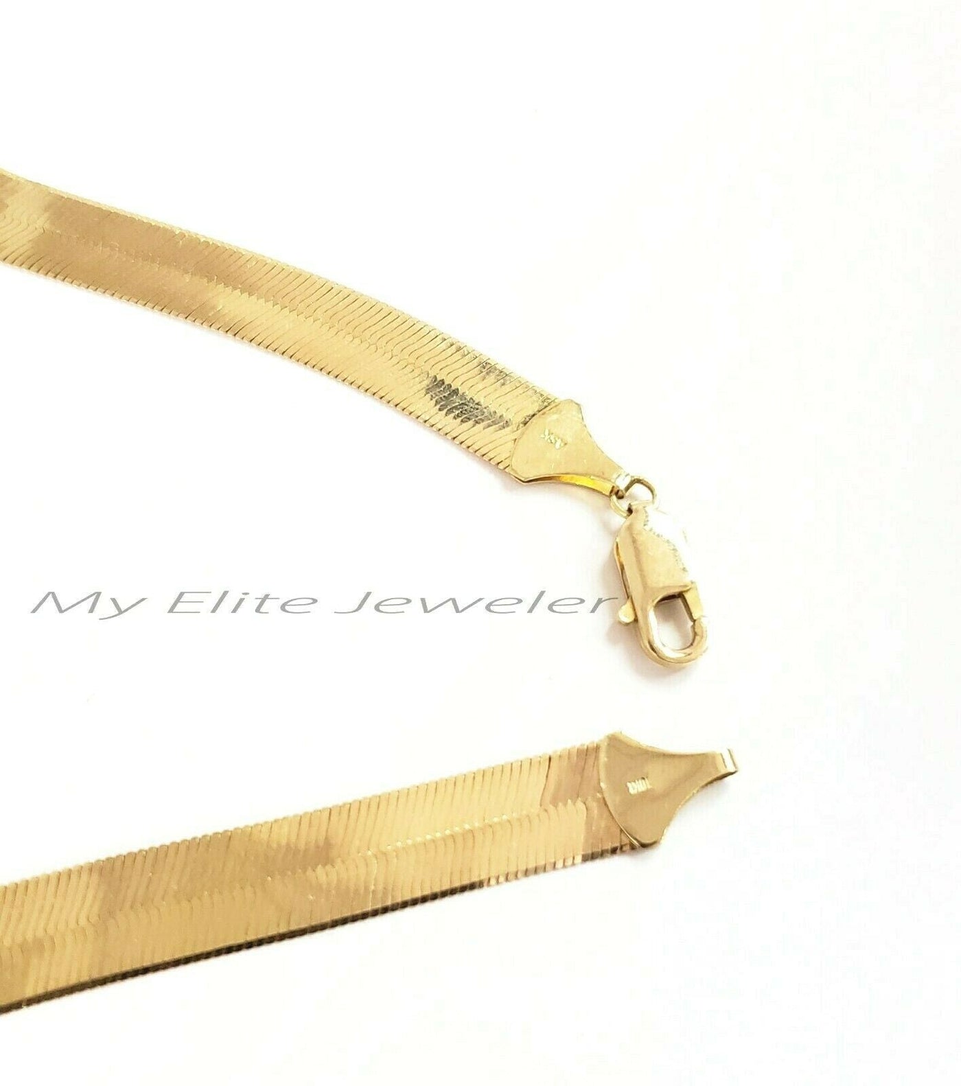 Real 10 K Ladies Men's Yellow Gold Herring Bone Chain 18 Inch 10 mm Lobster Lock