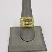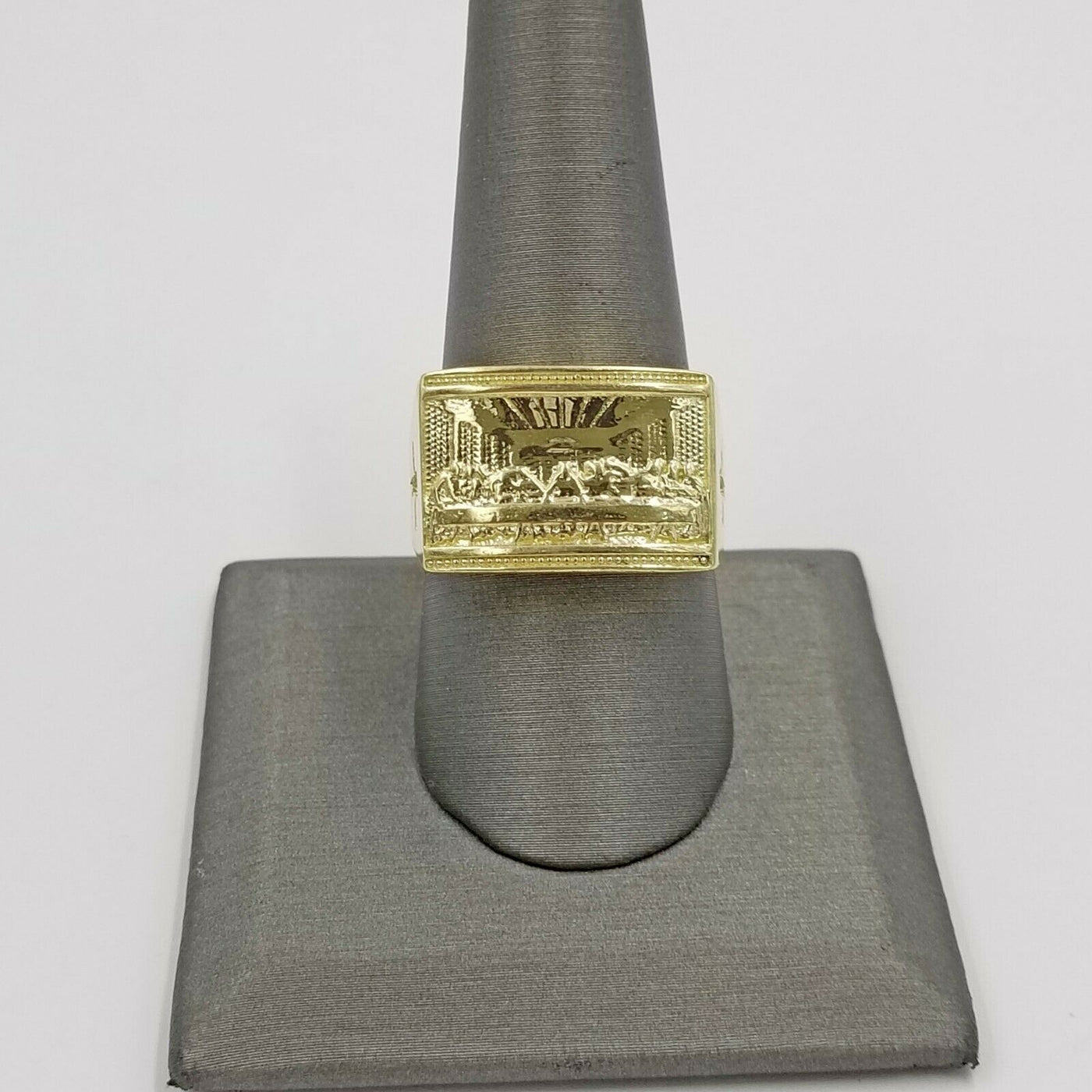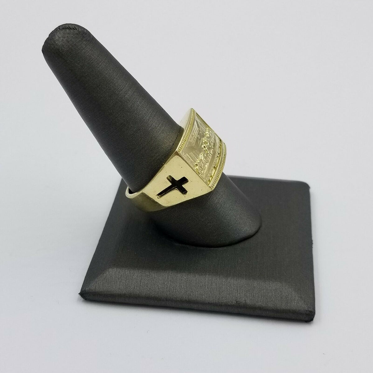Is Presenting You With This Genuine 100% 10 K pure Yellow Gold Designer Cut Men's Casual, Last Supper Ring For Men's. The Ring has the Cross design on the Ring's Band. The face width of the ring is 14mm approximately and the approximate weight of the ring is (8.5 - 9.0)Grams. It Is Made With Detailed Cut And Very Good Finishing.