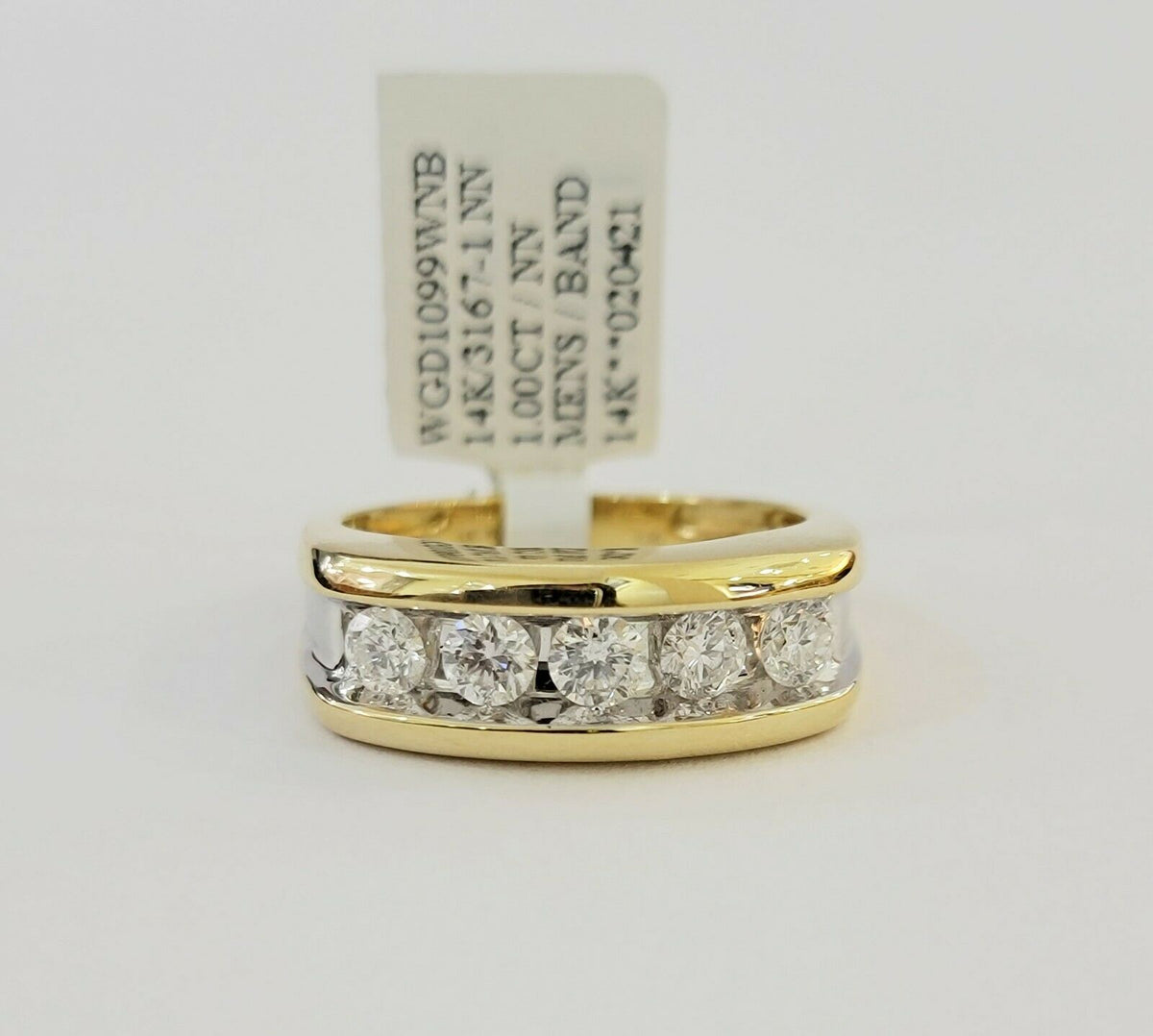 Real 14k 1CT Diamond Ring Men's Band channel-set round diamond Two-Tone Gold
