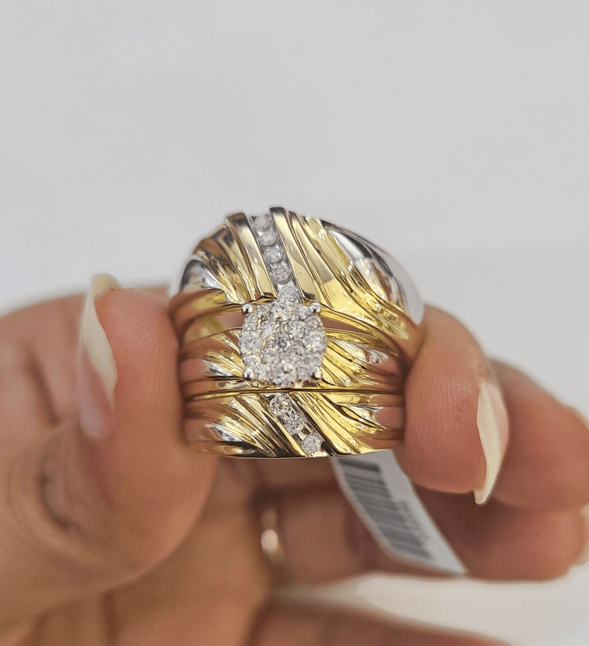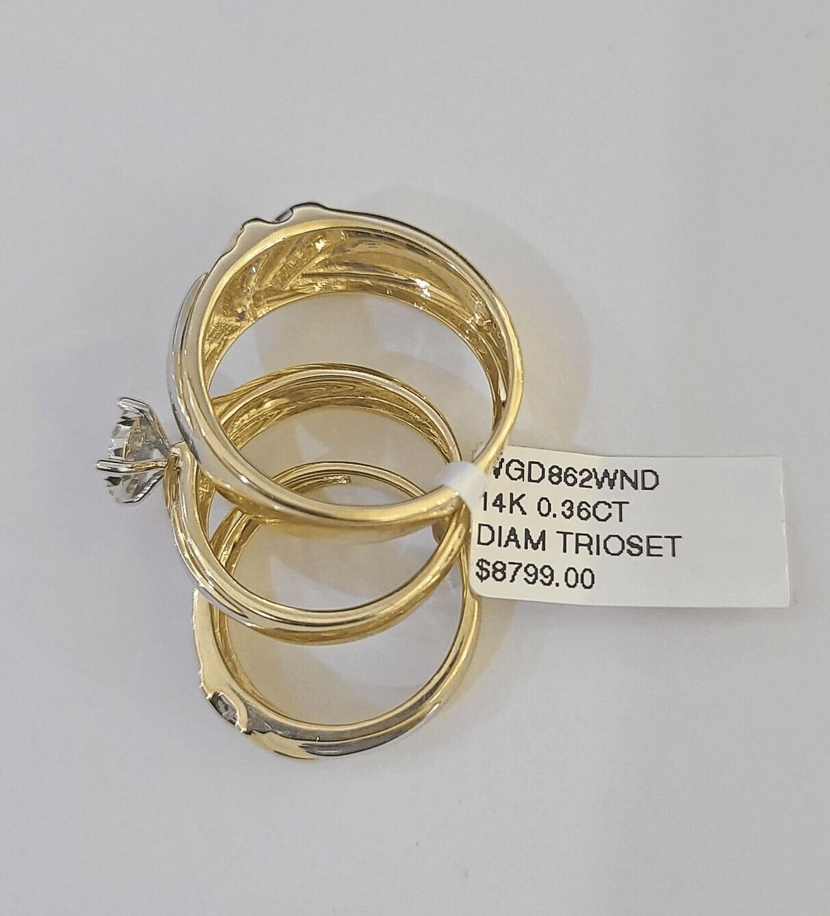 Real 14k Yellow Gold Diamond Ring Trio Set��