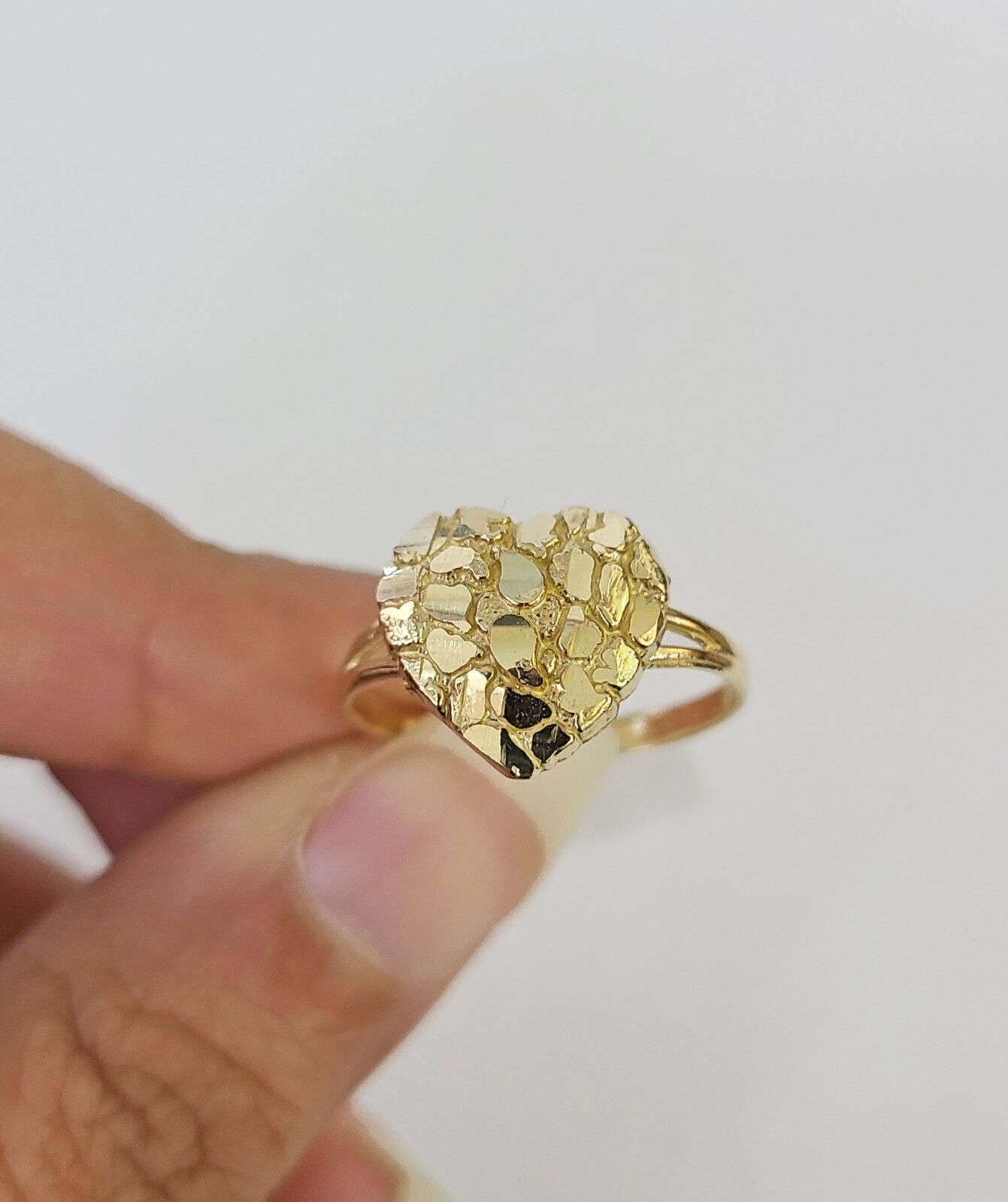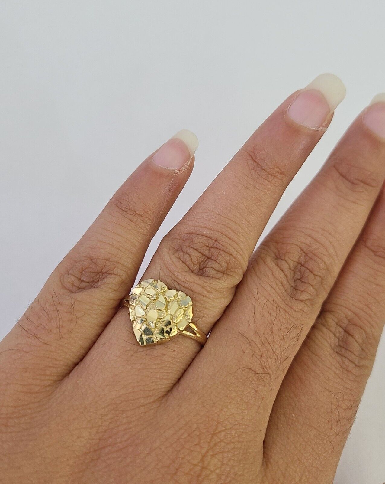 Ladies Ring 10k Yellow Gold Nugget Heart REAL