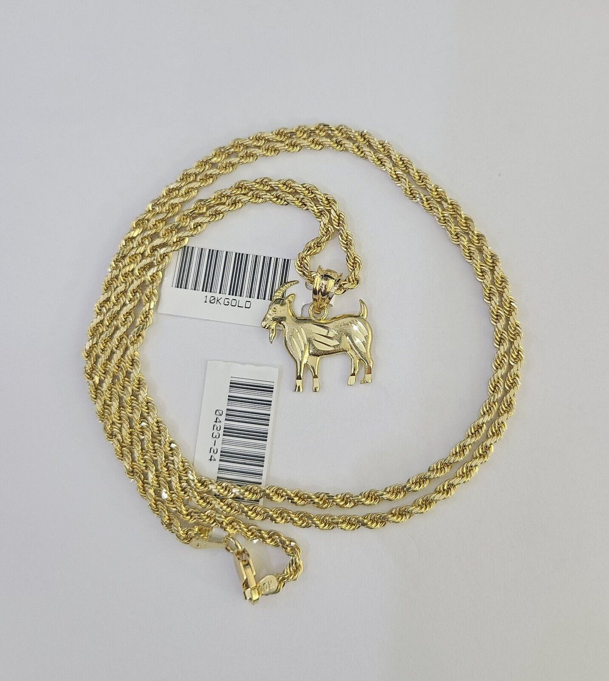 Is Presenting You with This Beautifully Designed Real 10k Yellow Gold GOAT Charm with 10k 2.5mm Rope Chain in various lengths. Please feel free to contact us if you have any queries regarding the item. These Beautiful chains and pendants will not tarnish, discolor, or fade because they are Pure 10K Gold. 24"-A3B8 , A0B8