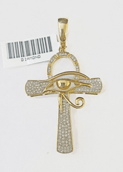 We present You with This Absolutely Stunning 10k Ankh Cross with Eye Charm / Pendant Made With Yellow Gold And Diamonds. It has a detailed cut with a very good finish.��This Beautiful Pendant will not tarnish, discolor, or fade because it is Pure Diamonds��. Please feel free to contact us if you have any queries regarding the item.