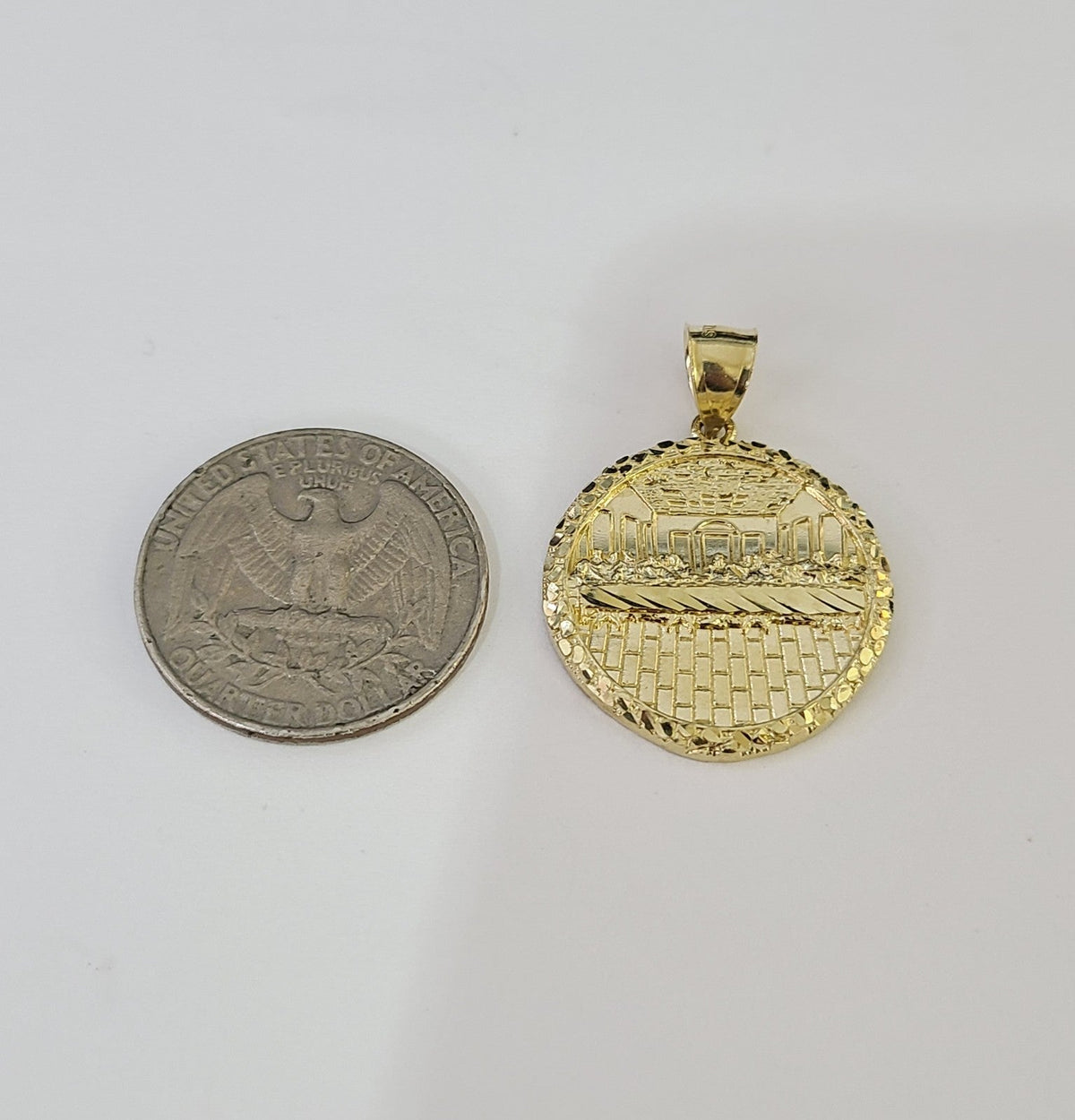 Is Presenting You with This Absolutely Stunning Real 10k Yellow Gold Round/Circular Last Supper Charm. These Beautiful pendants will not tarnish, discolor, or fade because they are Pure 10K Gold. This pendant can be worn everyday with any type of Necklace. Please feel free to contact us if you have any queries regarding the item. A3B0