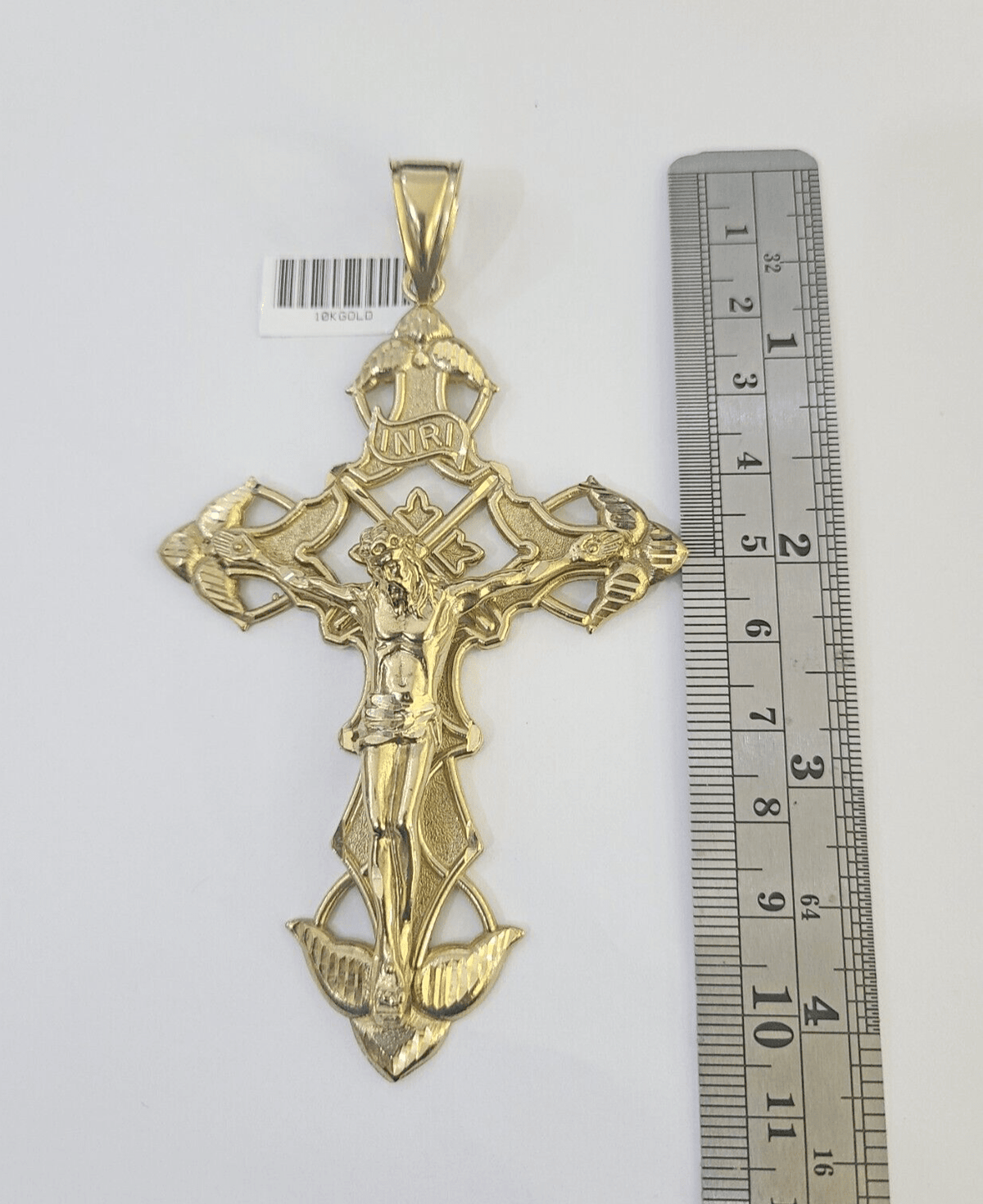 Is Presenting You with This Absolutely Stunning Real 10k Yellow Jesus Cross pendent. It has a detailed cut with a very good finish.��These Beautiful Pendants will not tarnish, discolor, or fade because they are Pure 10K Gold.��This Pendant can be worn everyday . Please feel free to contact us if you have any queries regarding the item. A25B3