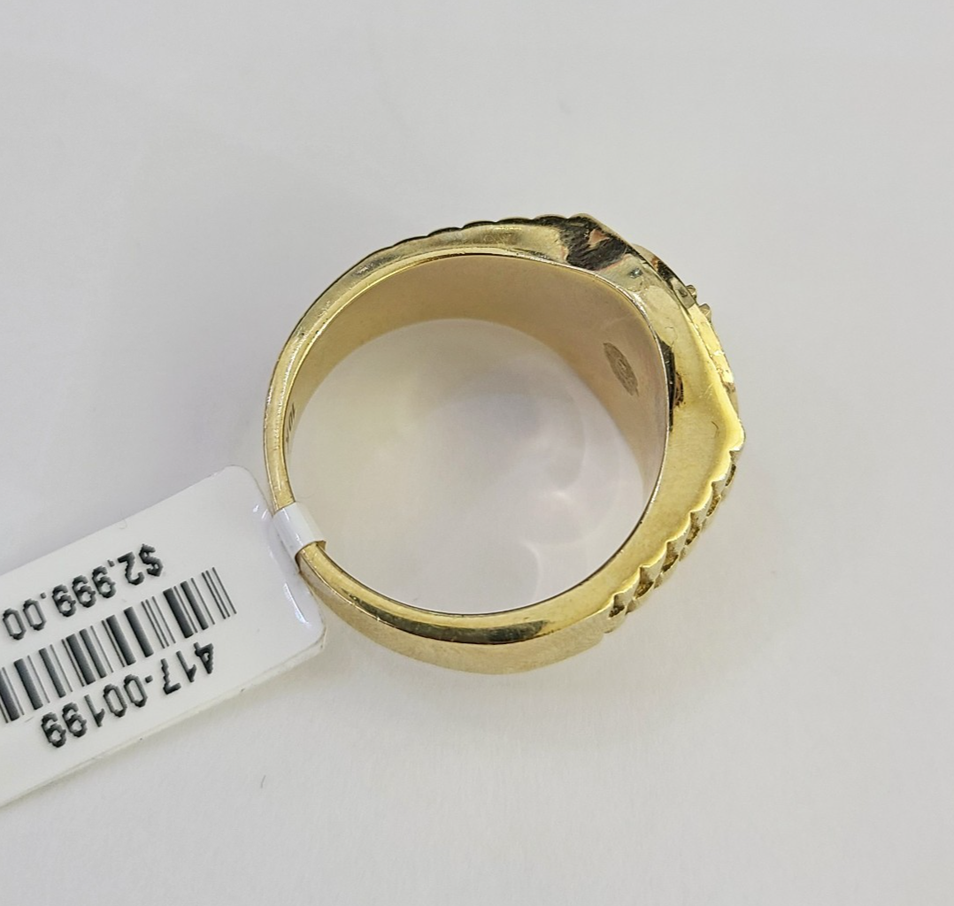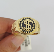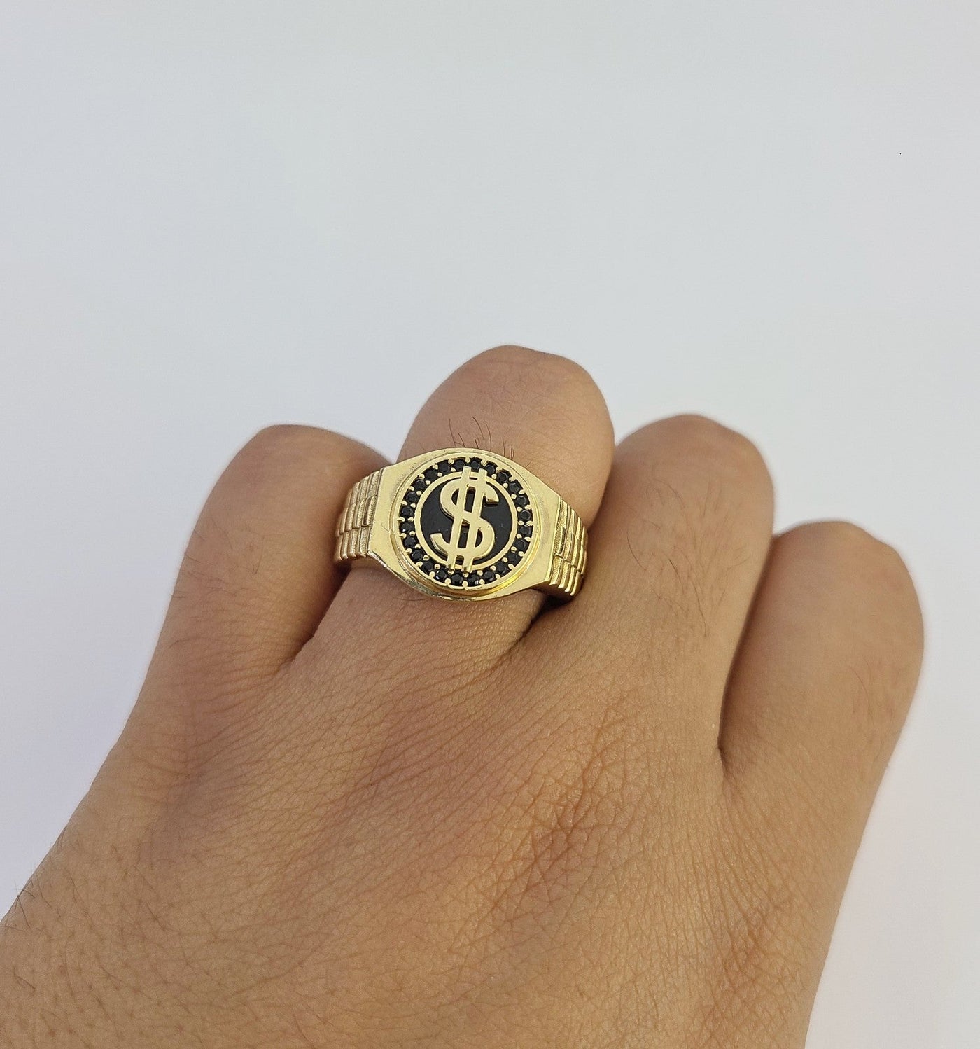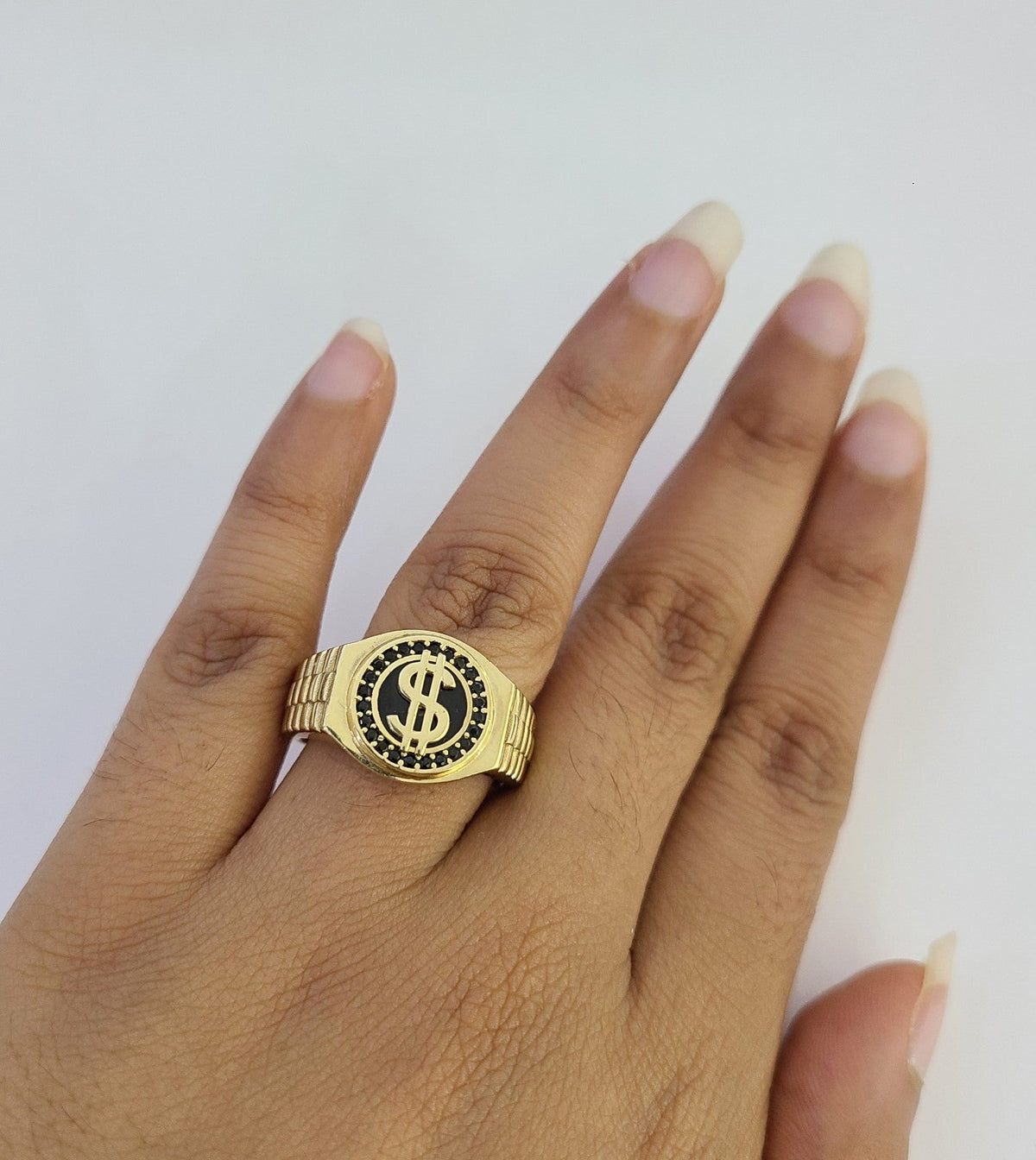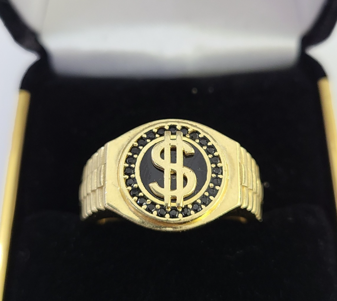 Real 10K Yellow Dollar Money Ring. The shape is Round, Traditional and Classic & Timeless. It flaunts Extra ordinary Design ring. It comes with standard size 10, and the ring is sizable. Sizing the ring will cost you extra $19.99 on your demand.