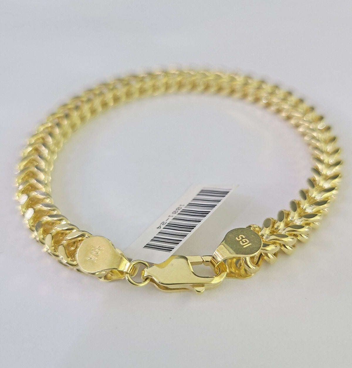 Is Presenting You with This Absolutely Stunning Real 10k Yellow Gold Franco Bracelet 6mm, 8 Inches, Lobster Lock. These bracelets are very strong and have a lobster clasp. These Beautiful bracelets will not tarnish, discolor, or fade because they are Pure 10K Gold. We also have them in various another length. Please feel free to contact us if you have any queries regarding the item.